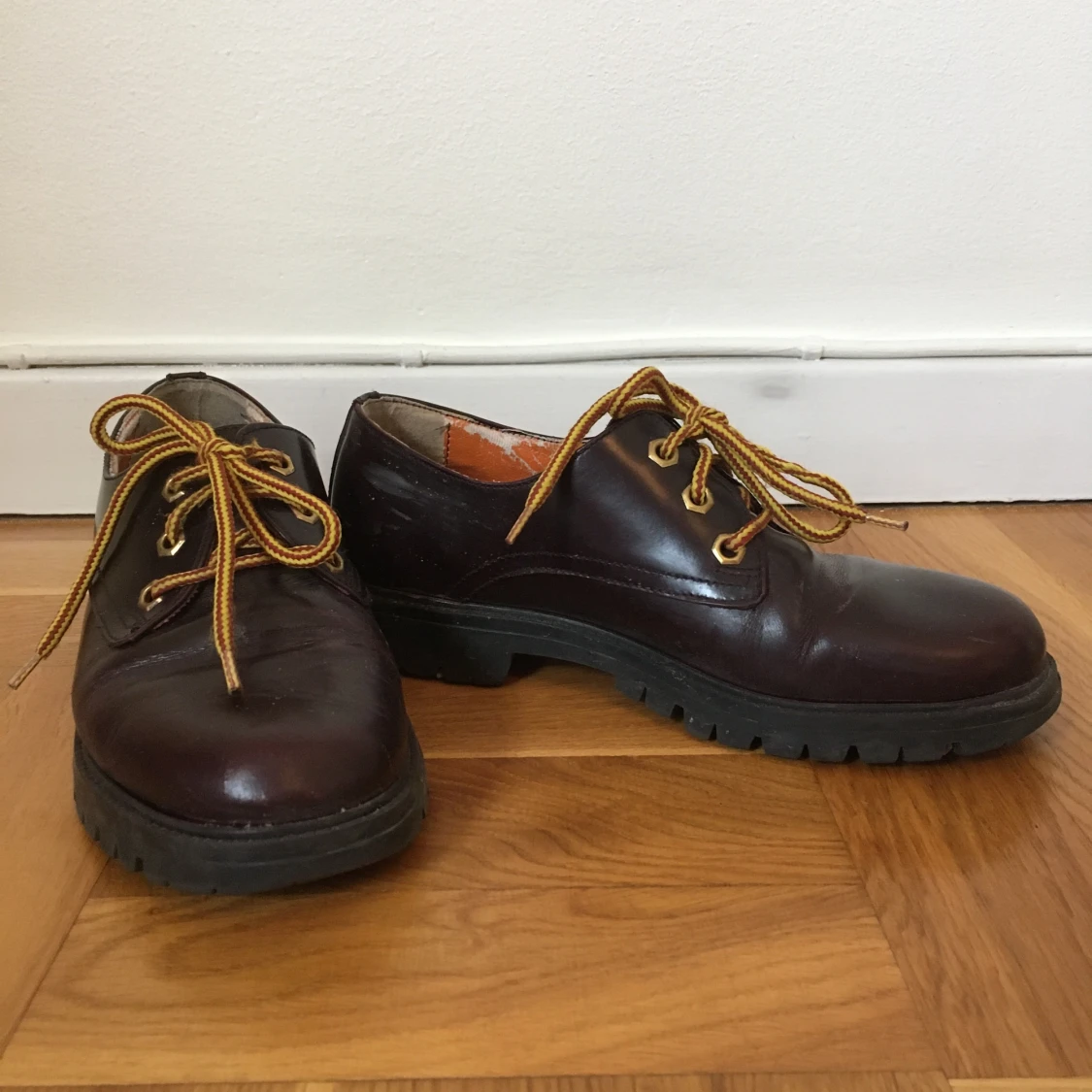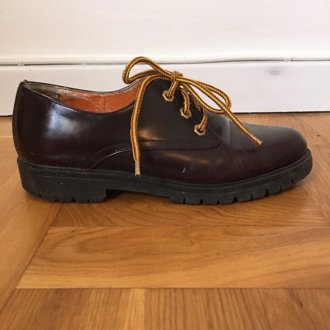 Retroinspirerade grova lågskor. Använda och i bra skick. Jag tycker så mycket om dem men använder för sällan för att ha kvar så jag hoppas de kan göra någon annan glad. Det står ingen storlek i men jag brukar ha 38 och de passar mig. Köpta i en vintagebutik på Östermalm. Frakten ingår inte i priset.