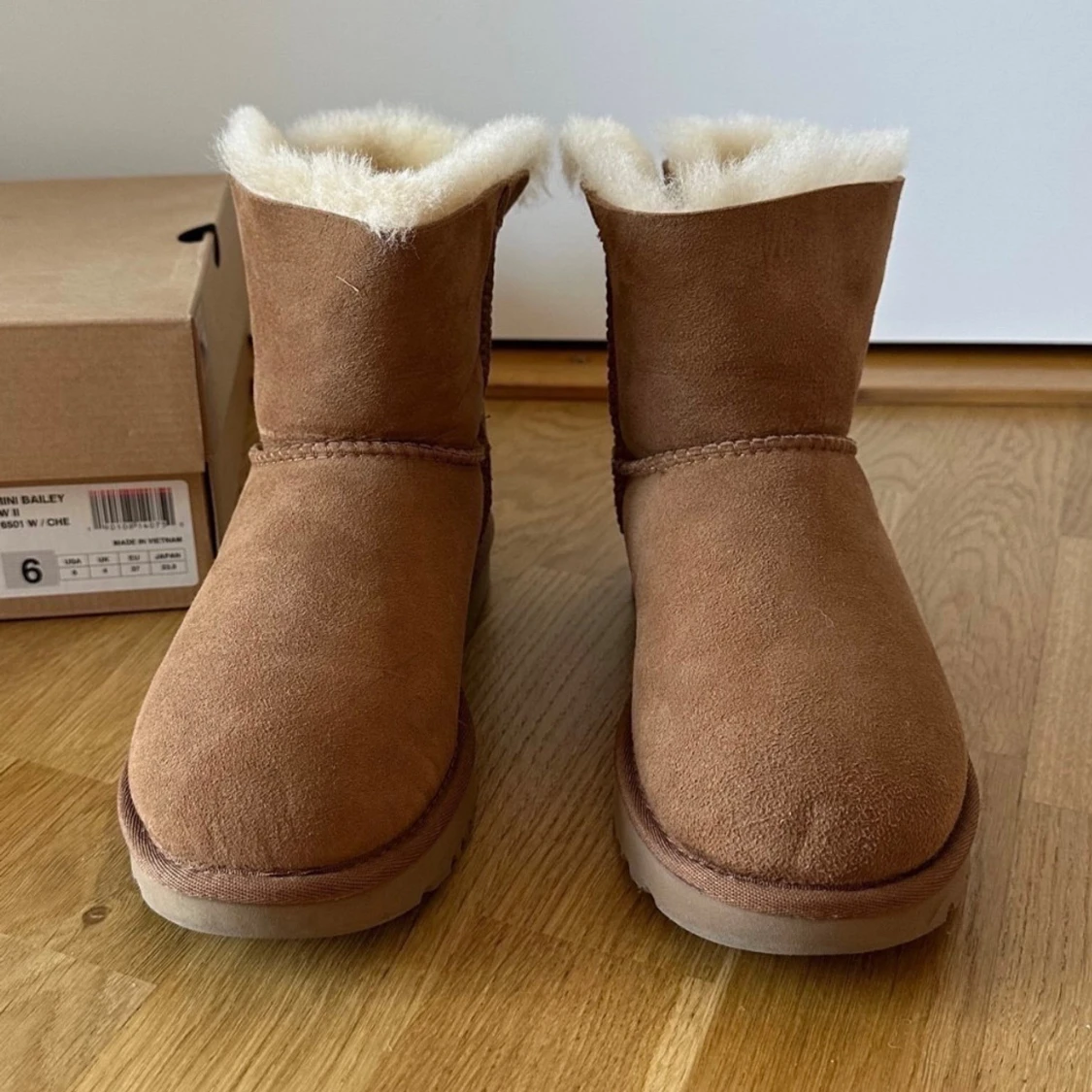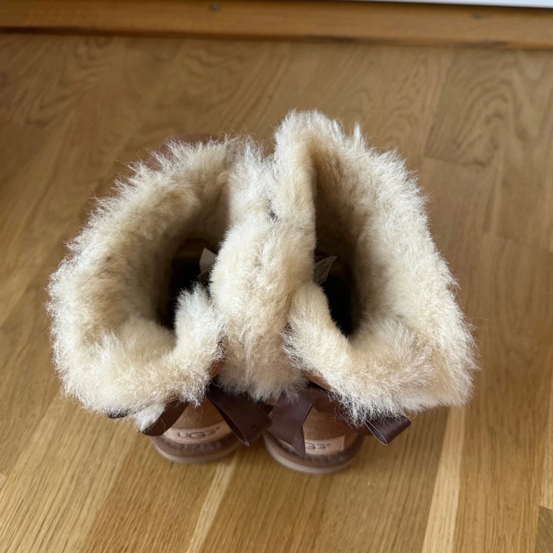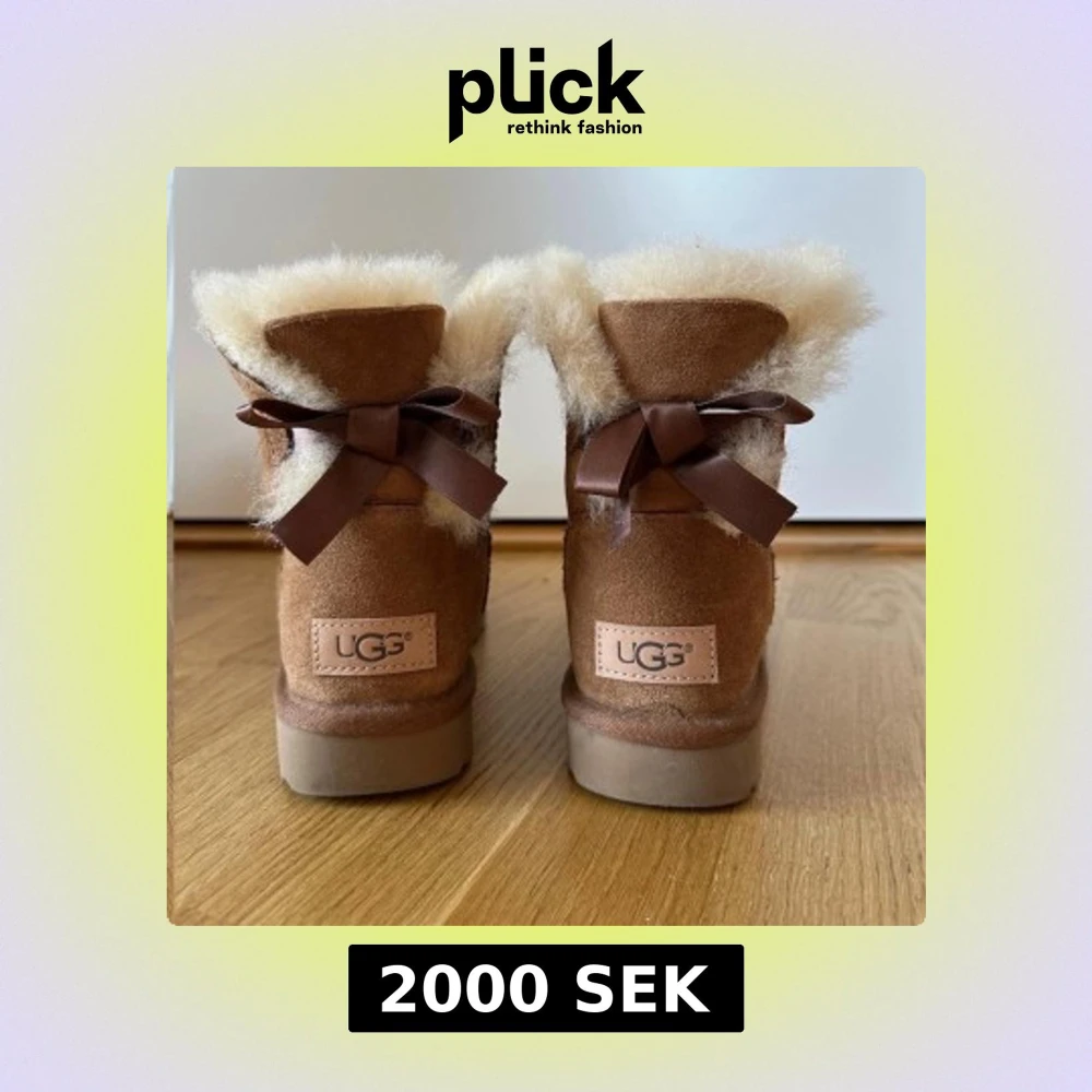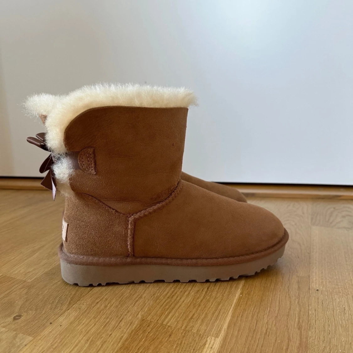ugg boots ”bailey bows” i klassisk brun mocka med fluffig vit fårull på insidan och snygga bruna rosetter bak. Nyskick, endast använt en gång. Nypris 2600 💕Skriv om du har frågor!