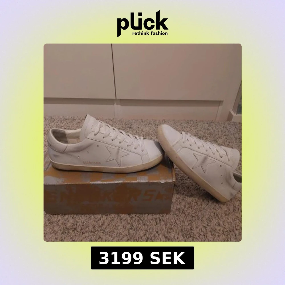 Säljer ett par stilrena vita skor från Golden goose. Skick är 9/10 defekt kan man se på bild 4. Har även box och orderbekräftelse från minto. Nypris ligger på 5500 , jag säljer för 3199;-! Priset är diskuterbart och om du har någon fråga är de bara att skriva!