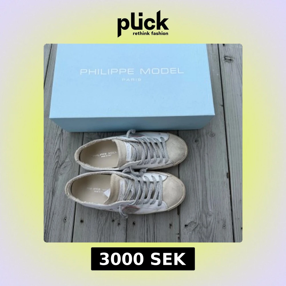 Säljer dessa Philippe model skor i storlek 37, Använda tre gånger därav är dom i väldigt bra skick. Alla ”detaljer” som man ser på är hur själva modellen ska se ut och hur dom såg ut när jag fick hem dom så de är alltså inte riktigt smuts osv. Beställda från deras egna hemsida och nypris är 3800. Silvriga glitter snören och rosa detaljer på sidan av skon, Säljer pågrund av att jag aldrig använder dom. Det tillkom även ett par vita skosnören om man vill byta. Hör av dig om du har mer frågor!👍🏼😋🥰