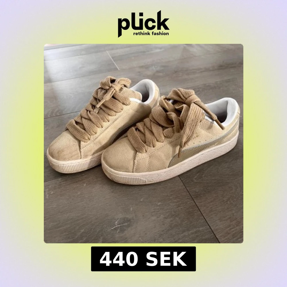 Snygga beige sneakers från Puma i mocka med breda snören och vit sula. (TILLKOMMER VITA SNÖREN OCKSÅ!) knappt använda