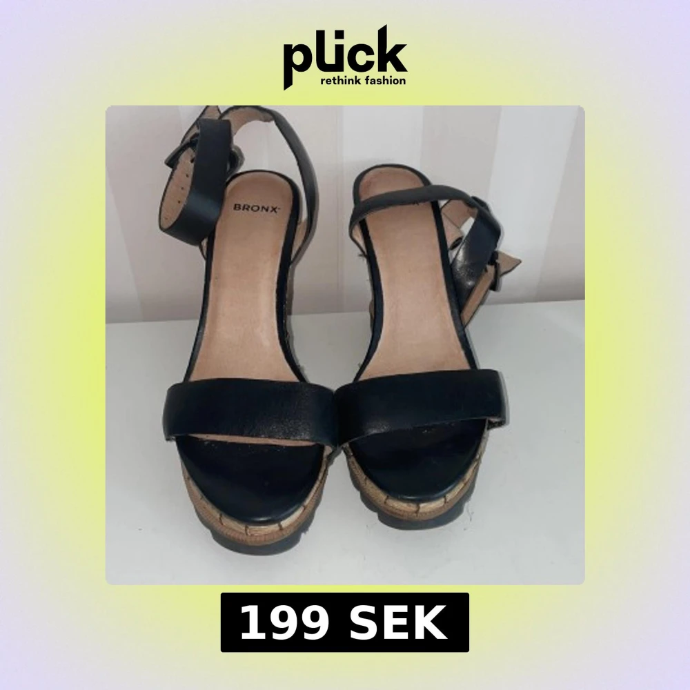 Snygga svarta sandaler från Bronx med kilklack(12 cm) i flätat material. De har en öppen tå och justerbara remmar runt ankeln för perfekt passform. Perfekta för sommarens alla tillfällen.