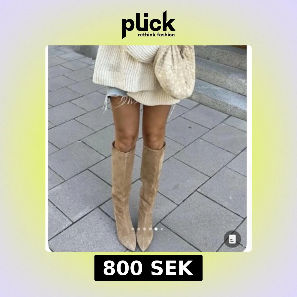 Snygga höga stövlar i beige mockaimitation med spetsig tå och låg klack💛 Dem liknar stövlarna från första bilden på Lojsan Wallin. Aldrig använda, bara provade hemma