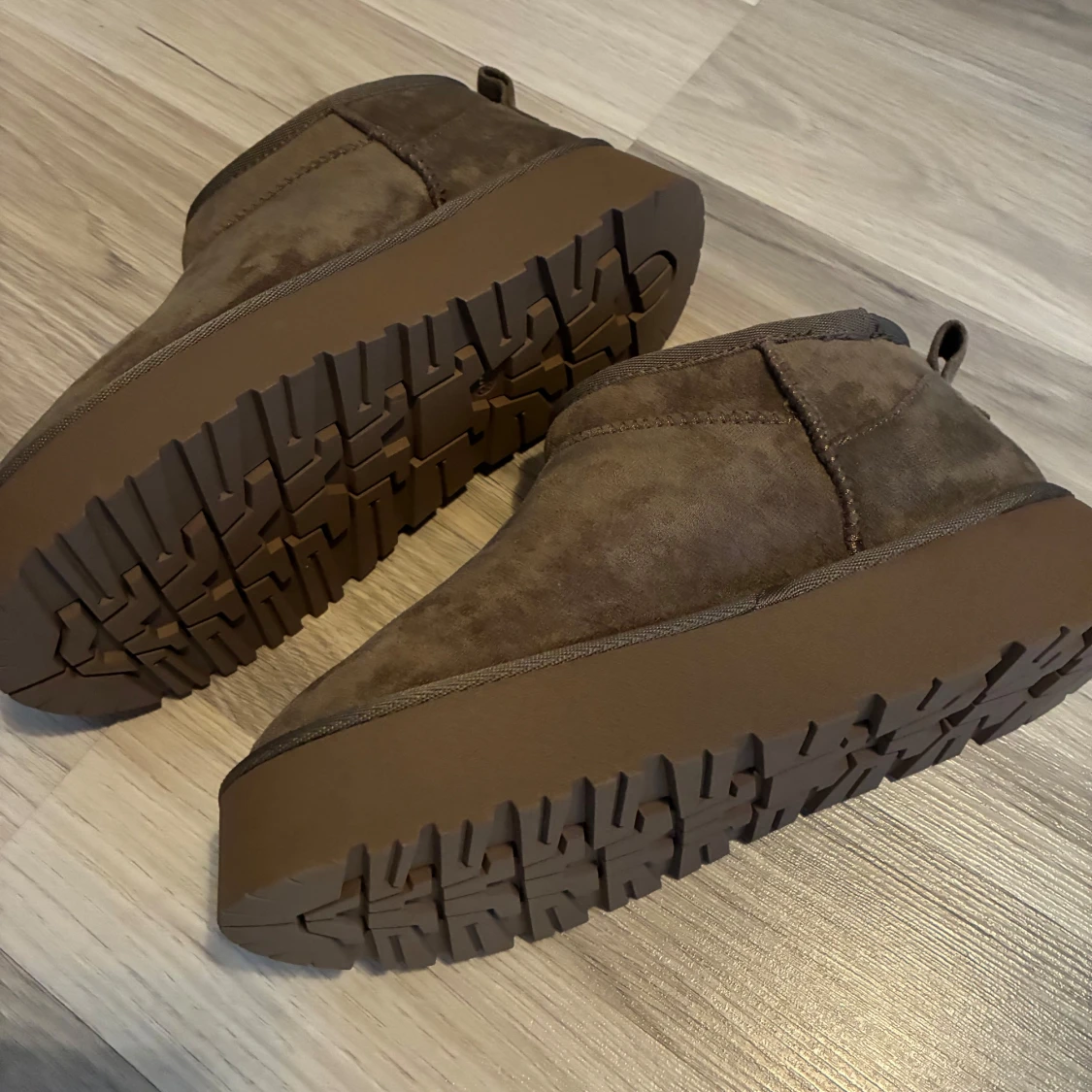 Mysiga brungröna boots från Graceland med mjukt foder och grov sula. Skorna är i mocka och har en rund tå samt platt sula. Perfekta för kalla dagar när du vill hålla fötterna varma och sköna.