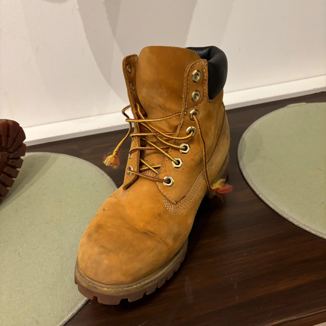 Säljer ett par klassiska bruna Timberland boots i bra skick. Storleken e lite oklar men en 42 eller 43 e det, köpte dom på human