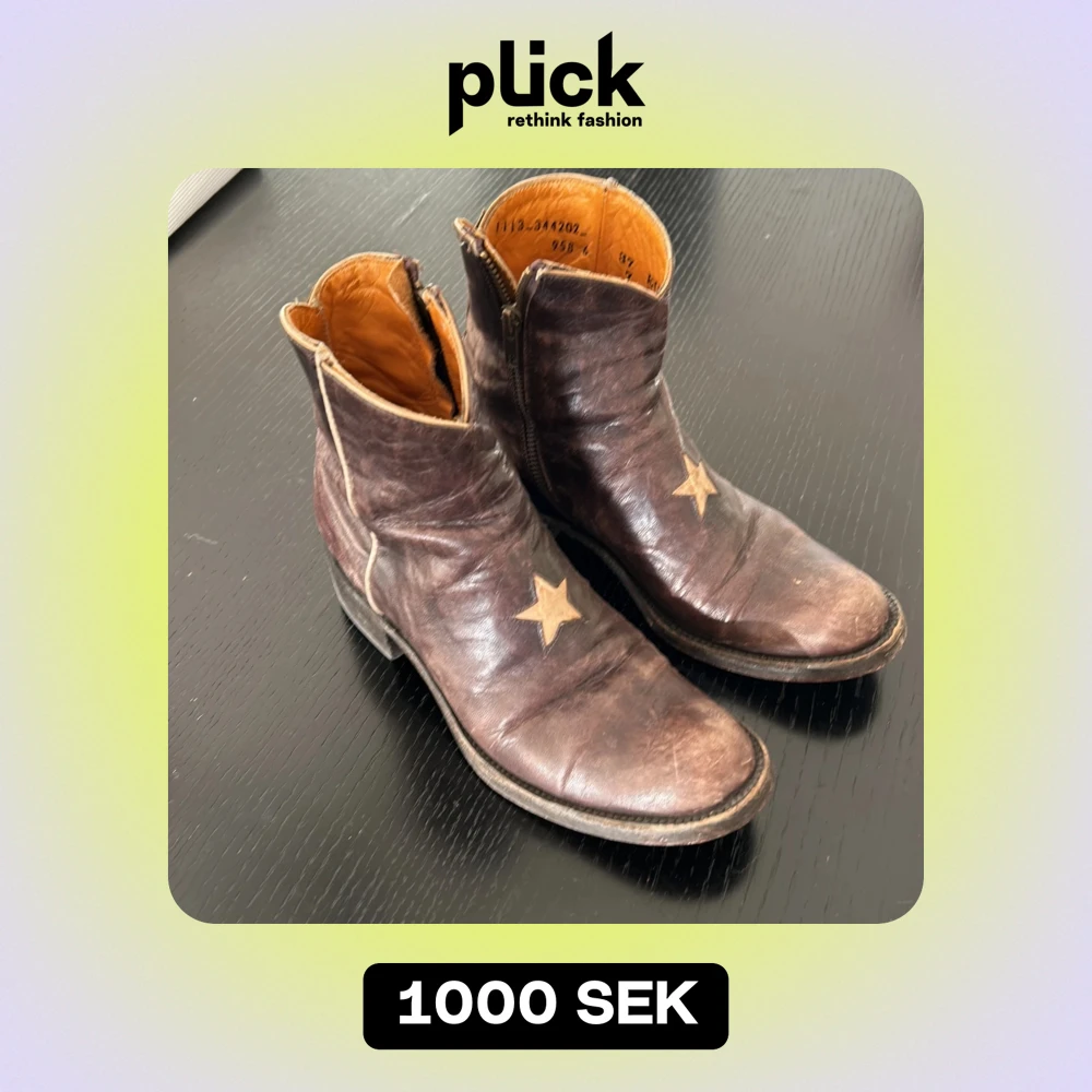 Säljer ett par coola mexikana bruna boots i skinn med en snygg stjärndetalj på framsidan. De har en dragkedja på sidan för enkel på- och avtagning. Perfekta för höst och vår, dessa boots ger en unik touch till din outfit. Använda men i bra skick.