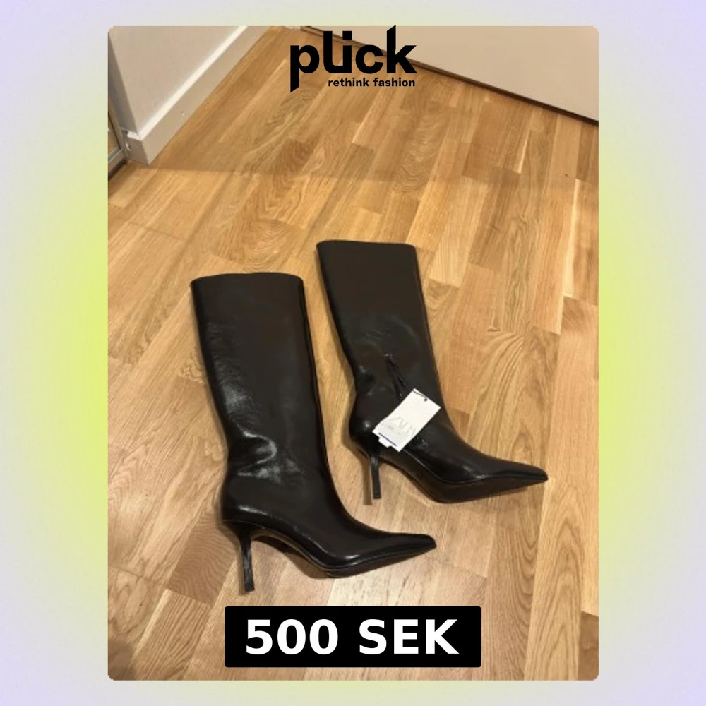 Säljer ett par bruna, höga stövlar från Zara med spetsig tå och smal klack. Helt oanvända med prislapp på. Köptes för 699kr och säljer för 500kr.