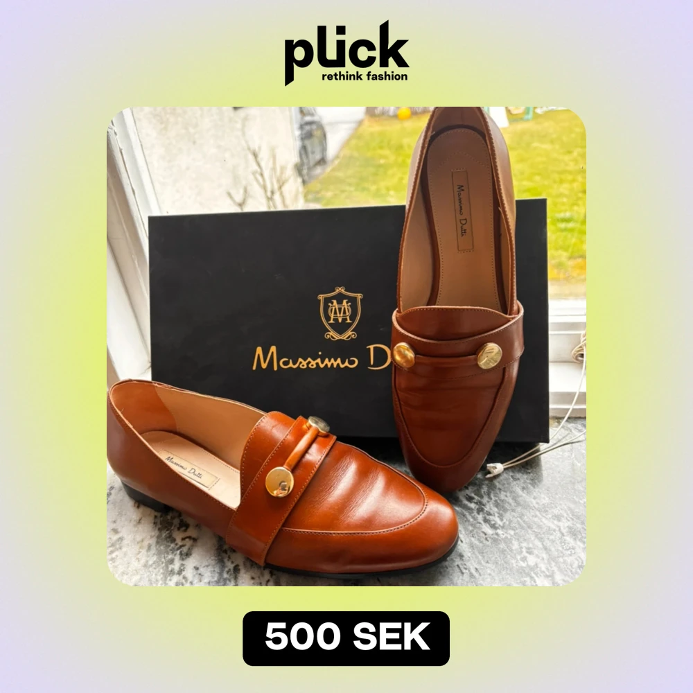 Snygga bruna loafers från Massimo Dutti med dekorativa guldfärgade knappar. Perfekta för en stilren look både till vardags och fest. Skorna har en klassisk design med en bekväm passform.