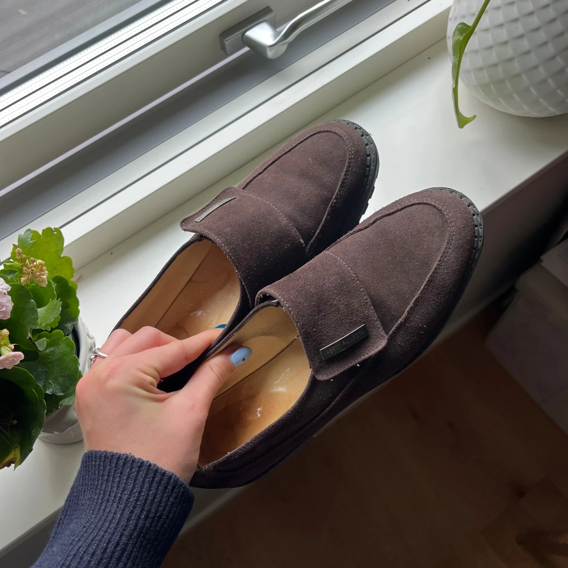 Superfina mörkbruna loafers i mocka köpta vintage men i toppenskick (jag har aldrig använt de)!! Från finska märket Pertti Palmroth så nypris är ca 1800 kr. 💕