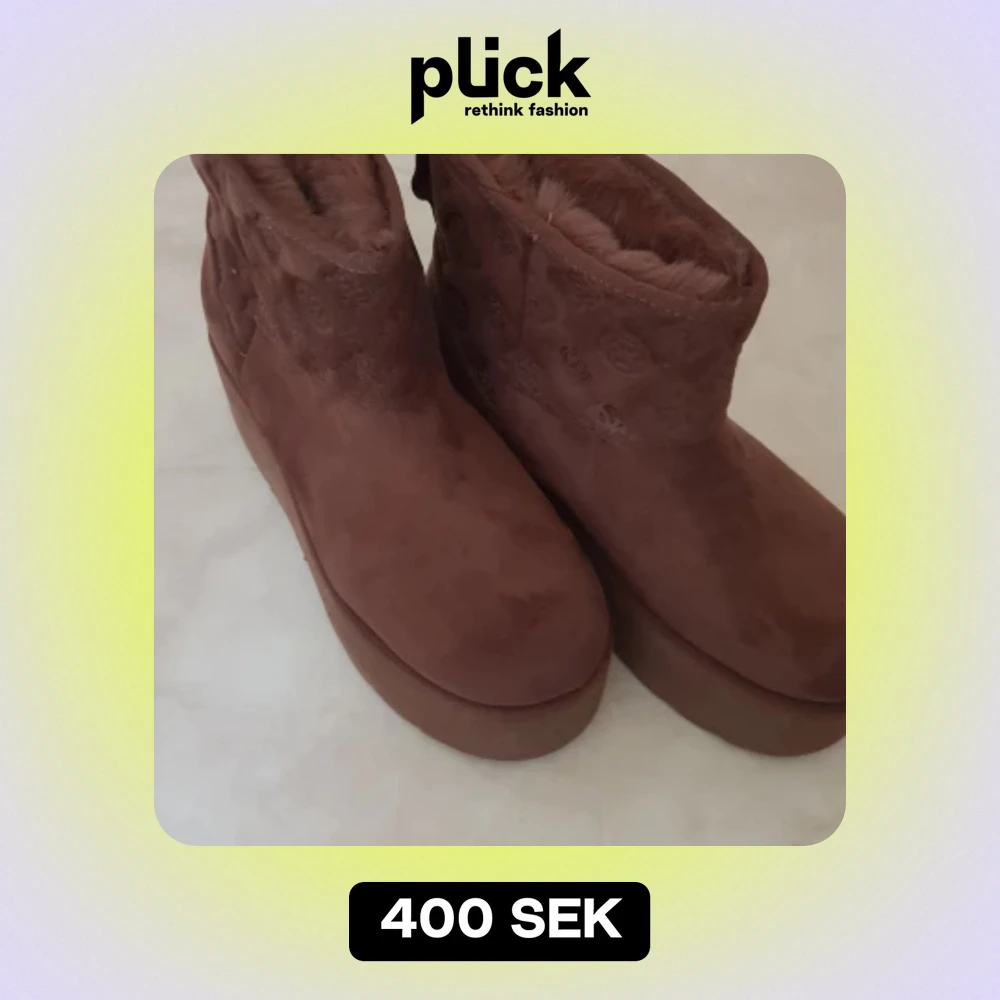 Säljer ett par snygga bruna boots från Guess i mocka. Stolek 35. De har en bekväm platåsula och ett diskret mönster på skaftet. Perfekta för höst och vinter med sin varma mjuka insida.Använda 2 gånger är för stora för mig.
