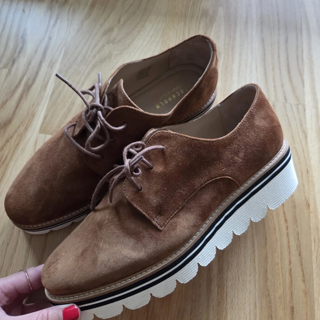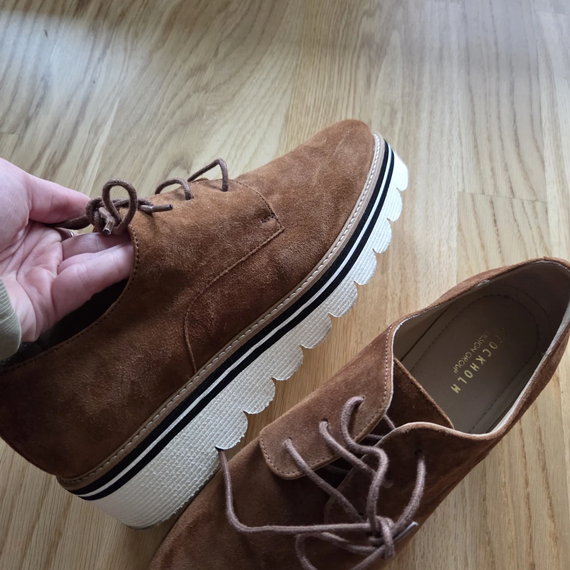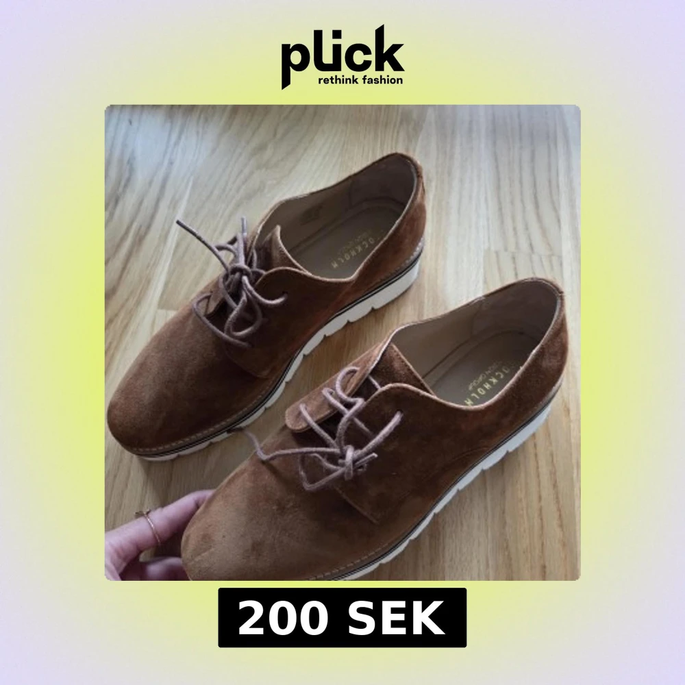 Snygga bruna loafers från Stockholm i äkta mocka. Storlek storlek 40. Använda endast 1 gång.