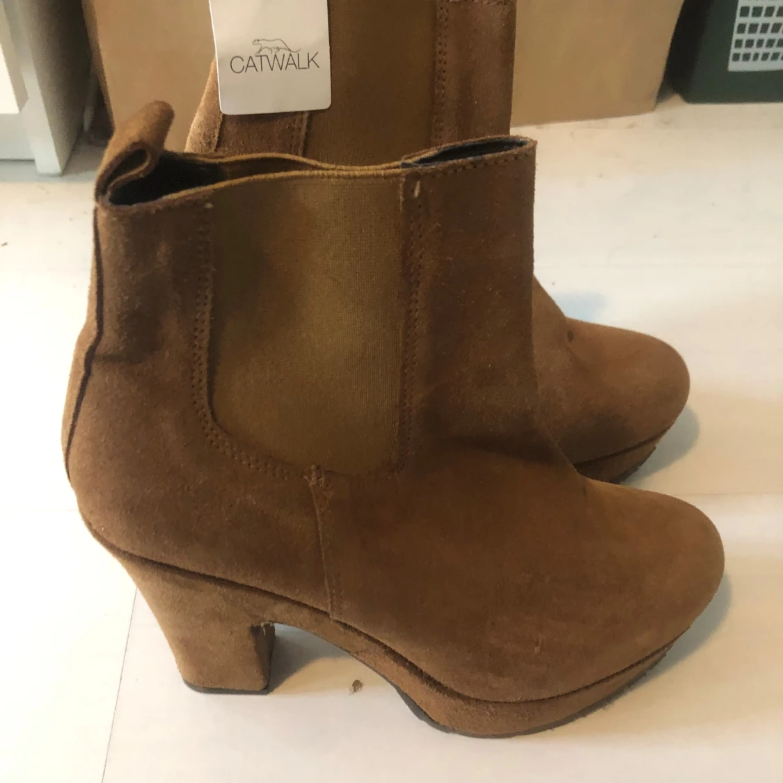 Snygga bruna stövletter i mocka från Catwalk med rund tå, plattformar och robusta sulor med bra grepp. Från vad jag vet säljs de här inte längre. Kommer med lapp, men inte med separat skolåda. Perfekta för den som vill ha en bekväm höstlook.