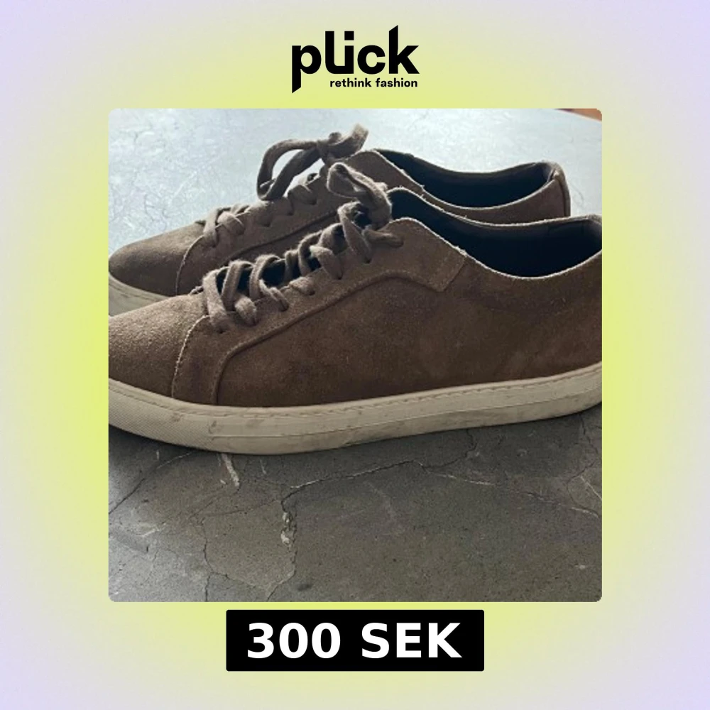 Snygga bruna sneakers i mocka från Massimo Dutti. De har en klassisk design med snörning och en vit sula som ger en stilren look. Perfekta för en avslappnad stil.