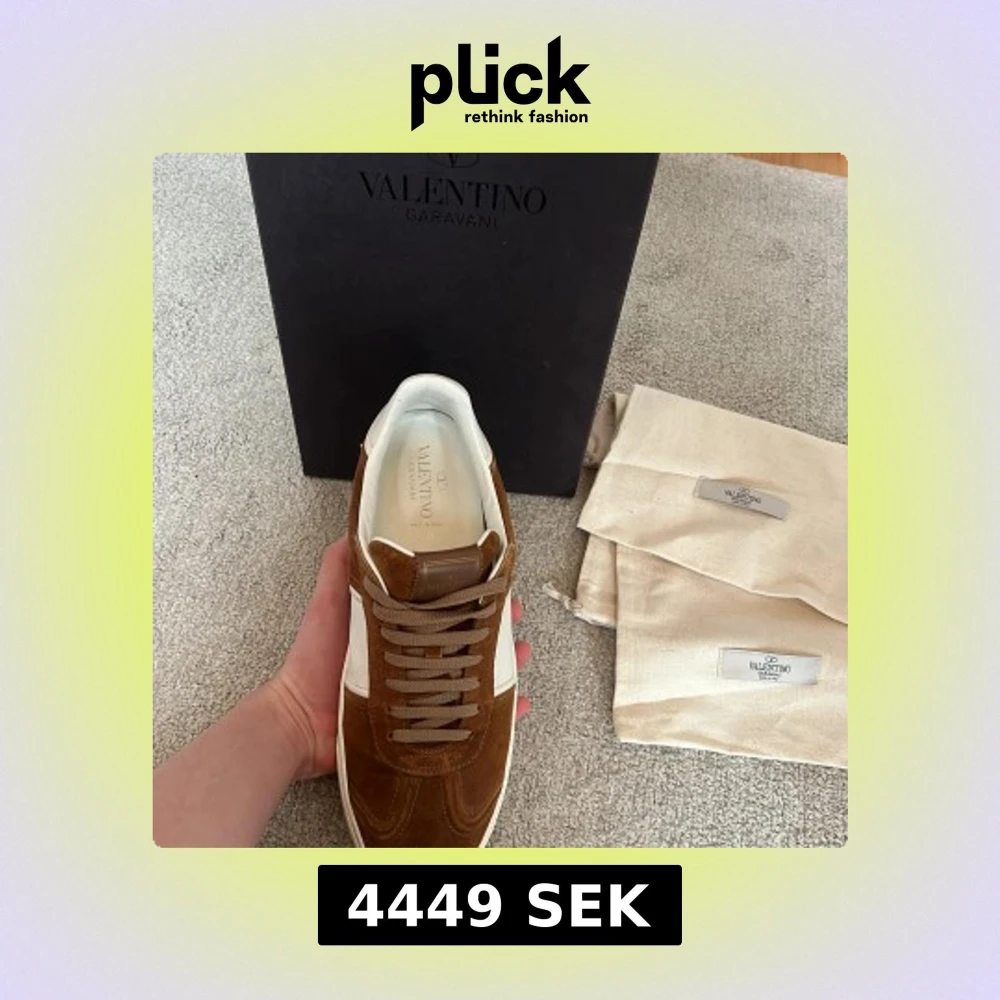 Säljer ett par snygga Valentino flycrew Garavani i brunt mocka och vitt skinn. Skorna har rund tå, platt sula och klassisk snörning. (Alla nitar kvar)Perfekta för dig som vill ha en stilren och exklusiv look. Dustbags och originalkartong medföljer. Skorna är väldigt sällsynt att hitta med alla nitar då dom slutades tillverkas för några år sen