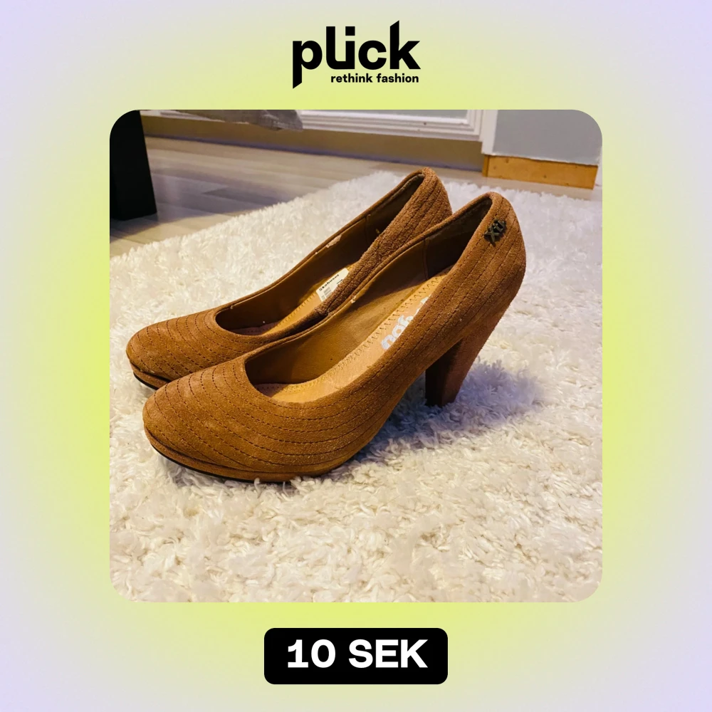 Snygga bruna pumps från Kickers i mocka med en bekväm klack. Stl 39!De har ett diskret randigt mönster och en rundad tå. Perfekta för både vardag och fest! 🥿