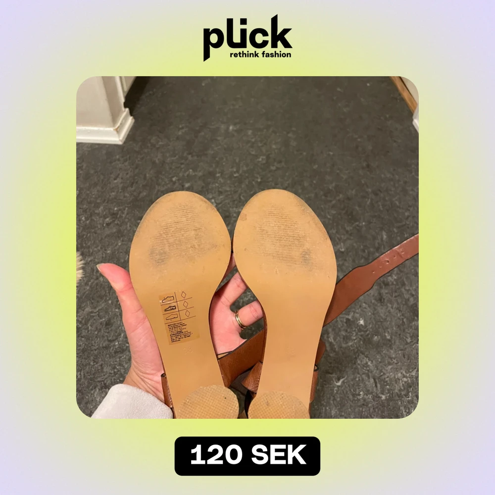 Snygga bruna sandaler från H&M i bra skick. De har en bekväm klack och justerbara remmar med spänne. Perfekta för sommarens fester eller en dag på stan. Tillverkade i syntetmaterial med en stilren design.