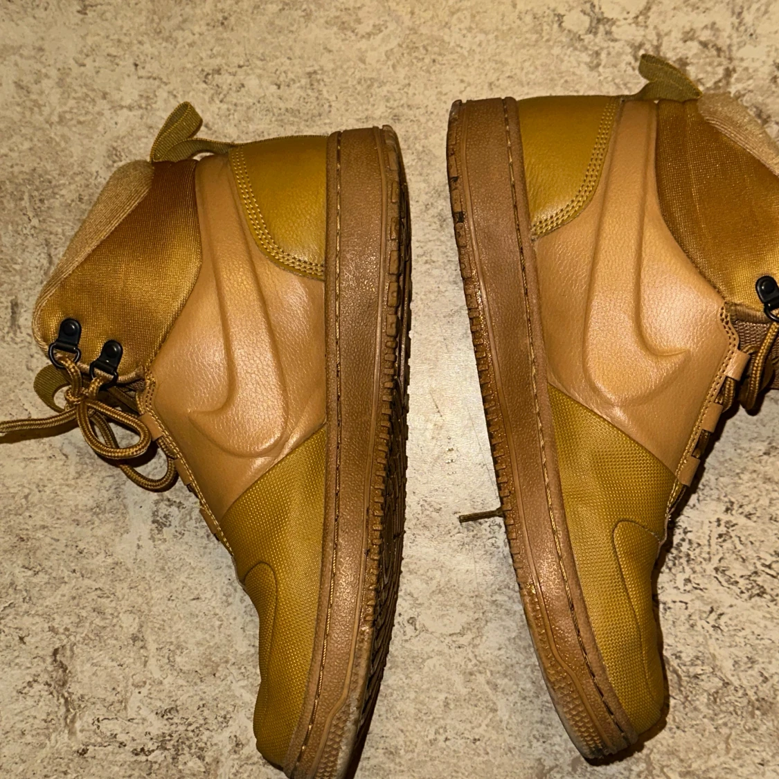 Snygga bruna sneakers från Nike med snörning och robust sula. Perfekta för höst och vinter med sin slitstarka design och bekväma passform.