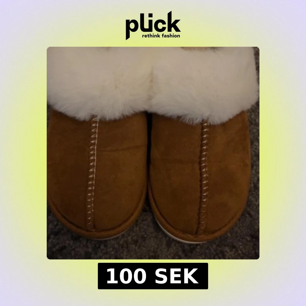 Mysiga bruna tofflor med vit päls runt kanten. Perfekta för att hålla fötterna varma under kalla dagar. Tofflorna har en mjuk insida och en stabil sula.