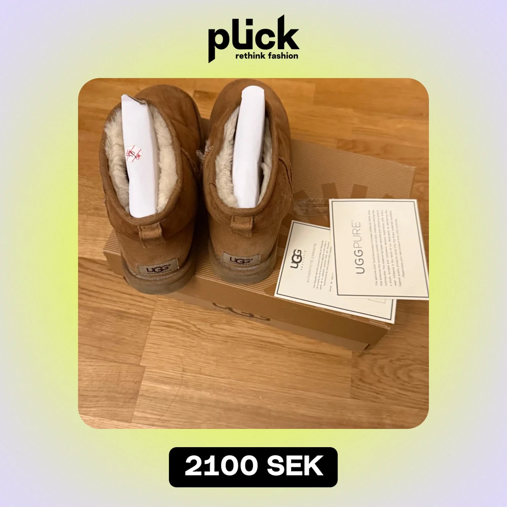Säljer ett par klassiska bruna UGG boots i mocka. De är i nytt skick och kommer med originalförpackning och äkthetsintyg. Insidan är fodrad med mjuk päls för extra värme och komfort. Perfekta för kalla höst- och vinterdagar.