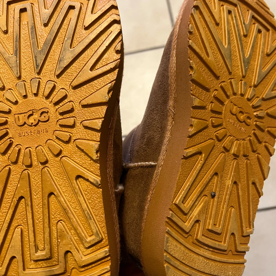 Säljer ett par bruna UGG Classic Tall boots i storlek 37. De är tillverkade i Australien och har en mjuk pälsfodring för extra värme. Perfekta för kalla dagar.