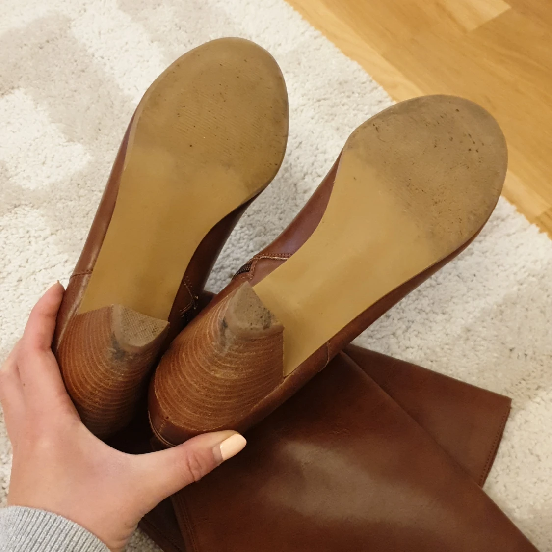 Mycket fina damstövletter i brunt. Dragkedja på sidan. Lite slitage på klacken men annars i mycket fint skick! Nypris 599