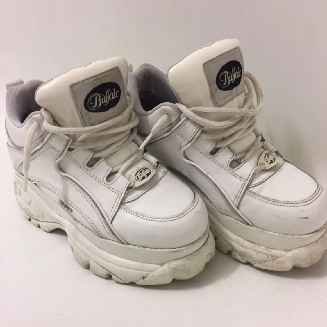 Vita Buffalo platform sneakers storlek 40. Använda men i bra skick! 700 kr + frakt eller bud, möts gärna upp i Sthlm.