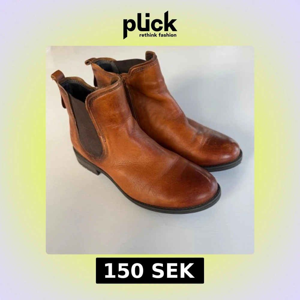Snygga bruna boots från Bugatti i äkta skinn. Skorna har elastiskt parti på utsidan och dragkedja på ”insidan”. Låg klack. Mjukt foder på insidan och robust sula för extra komfort. En liten reva vid tån på högerskon, se bild.