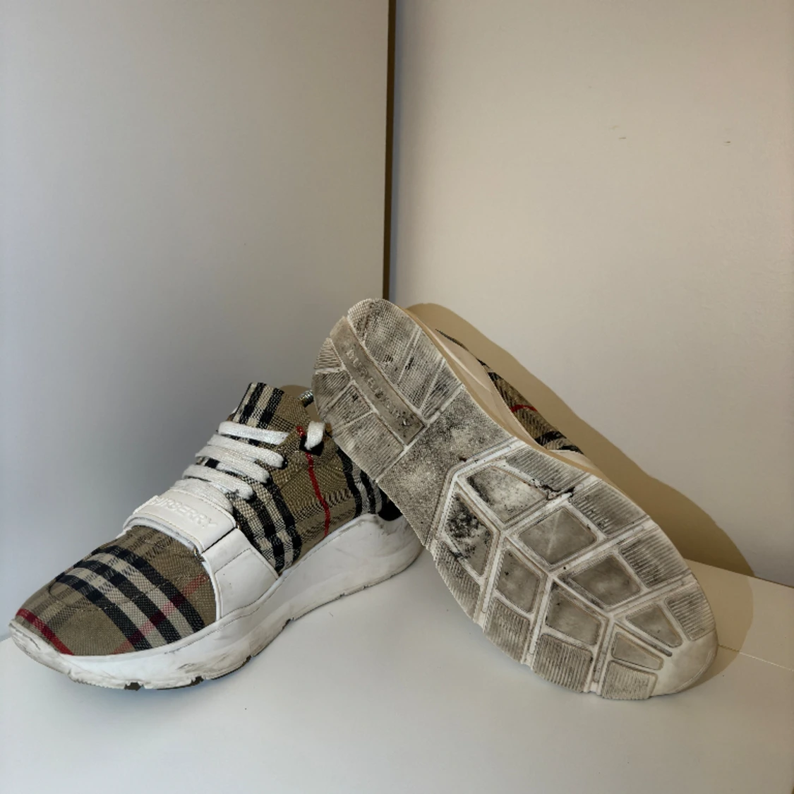 Säljer nu mina Burberry Checked Lace-up sneakers i storleken 42. Finns lite märken men inget som inte går bort om man tvättar de. Nypris ca 7000kr, mitt pris 2499