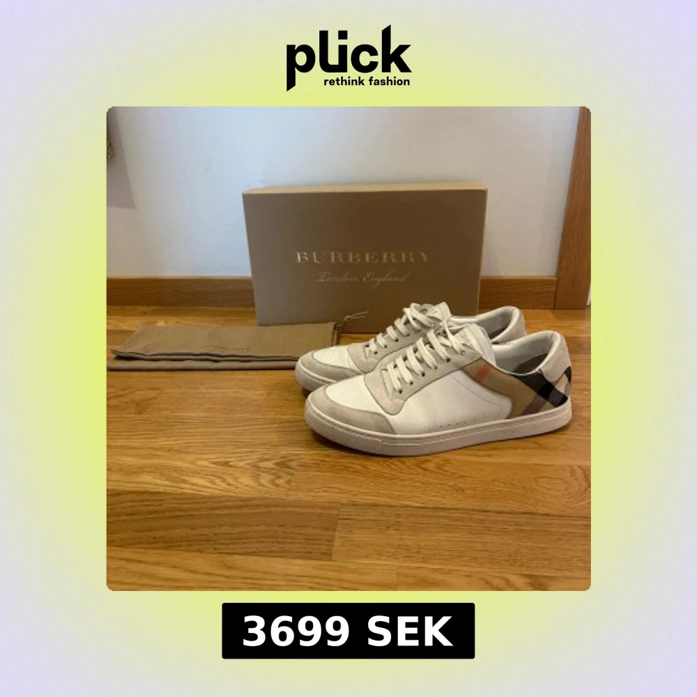 Säljer ett par snygga vita sneakers från Burberry i nytt skick. De har den klassiska Burberry-rutiga detaljen på sidan. Perfekta för både vardag och fest! Kommer med originalkartong och dustbag. Passa på att köpa dessa stilrena skor! 🏷️Storlek 41,5 passar även upp till 42,5