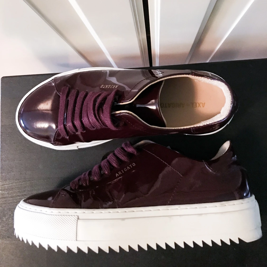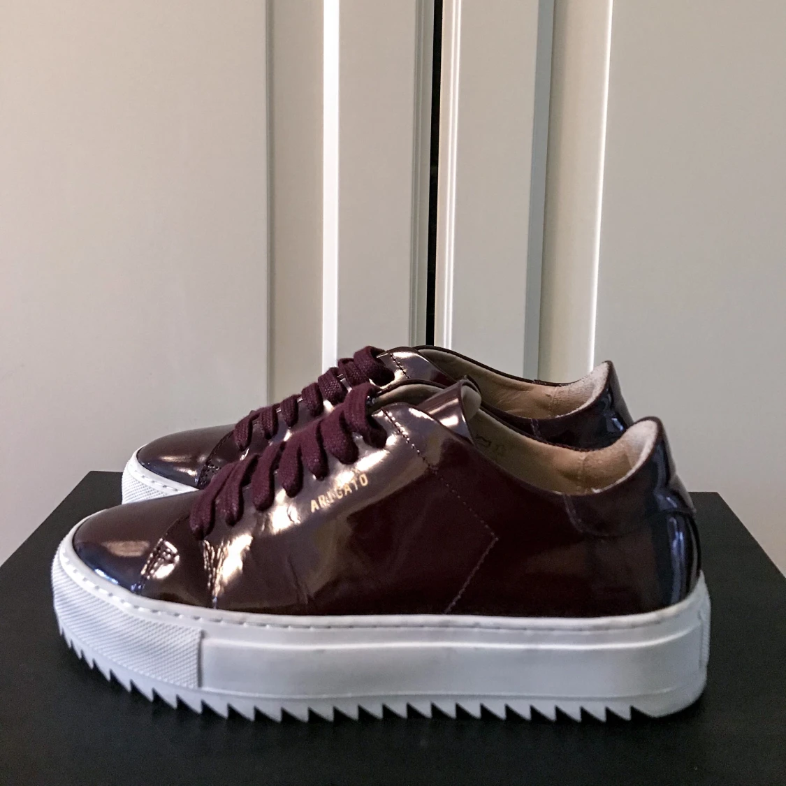 Sneakers från AXEL ARIGATO i toppskick. Använda ett fåtal gånger. Inga märken eller skavanker. Grov sula i gummi. Ovansida i glansig/lackad stil i vinrött/burgundy. Storlek 36. Dust bag medföljer. Nypris ca 2200:-