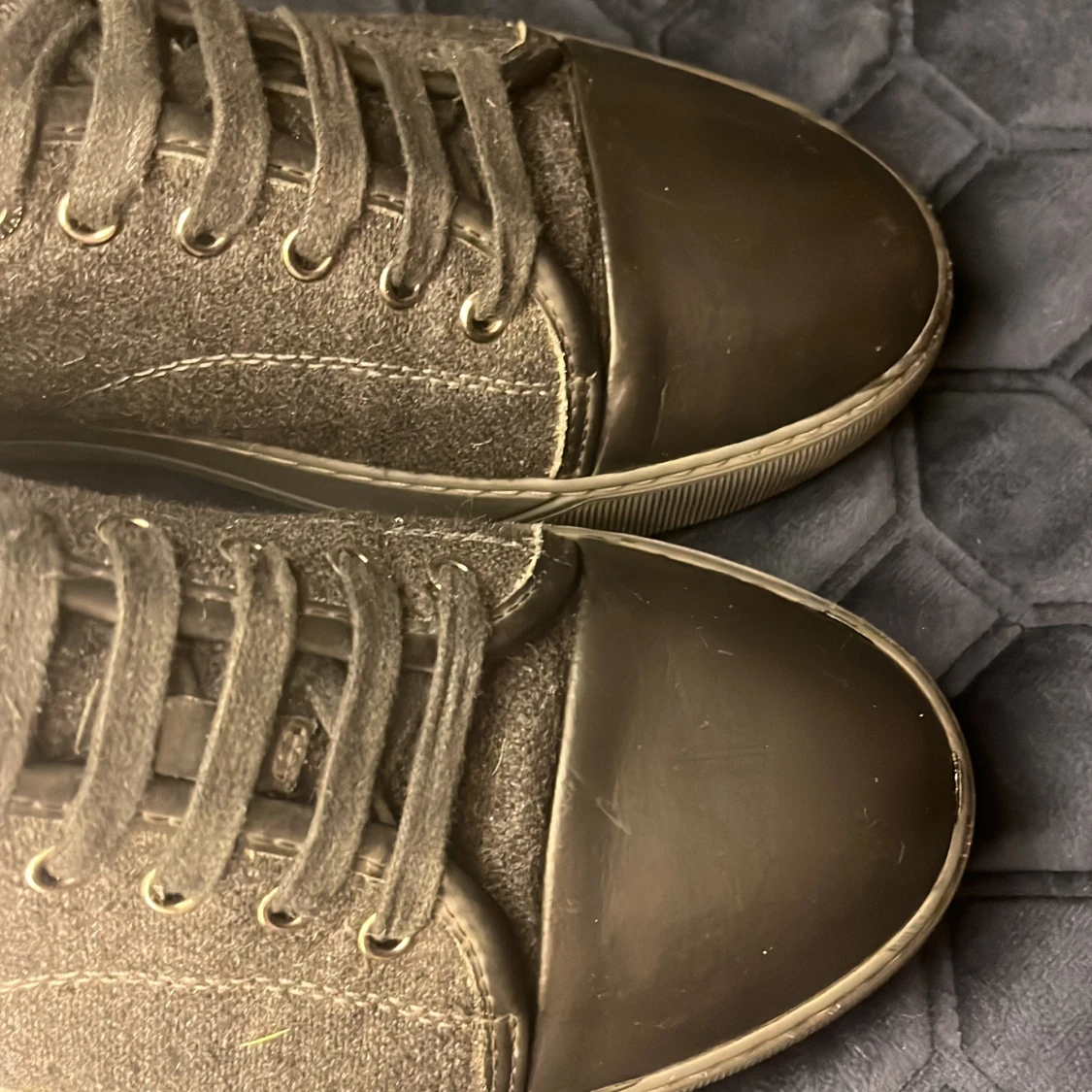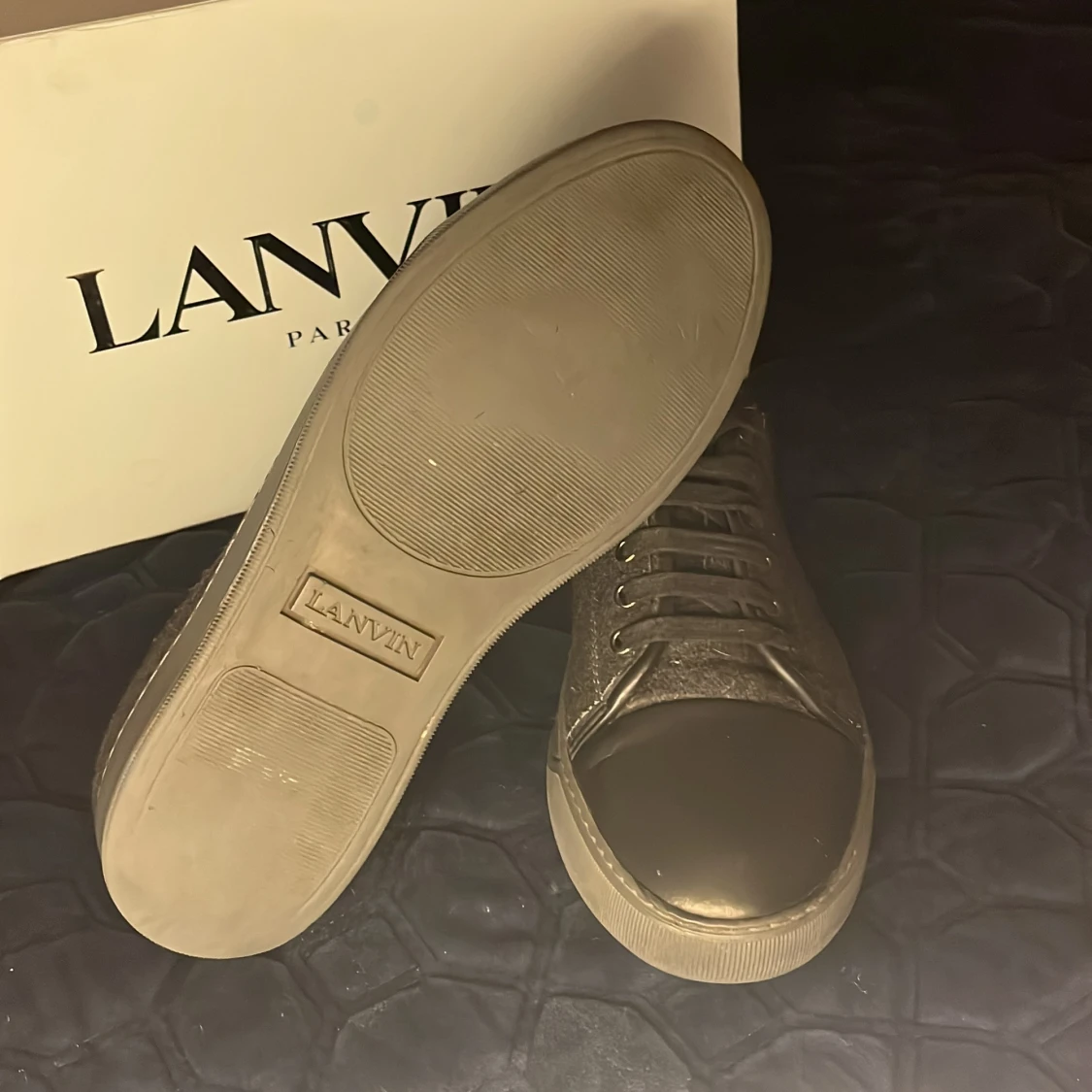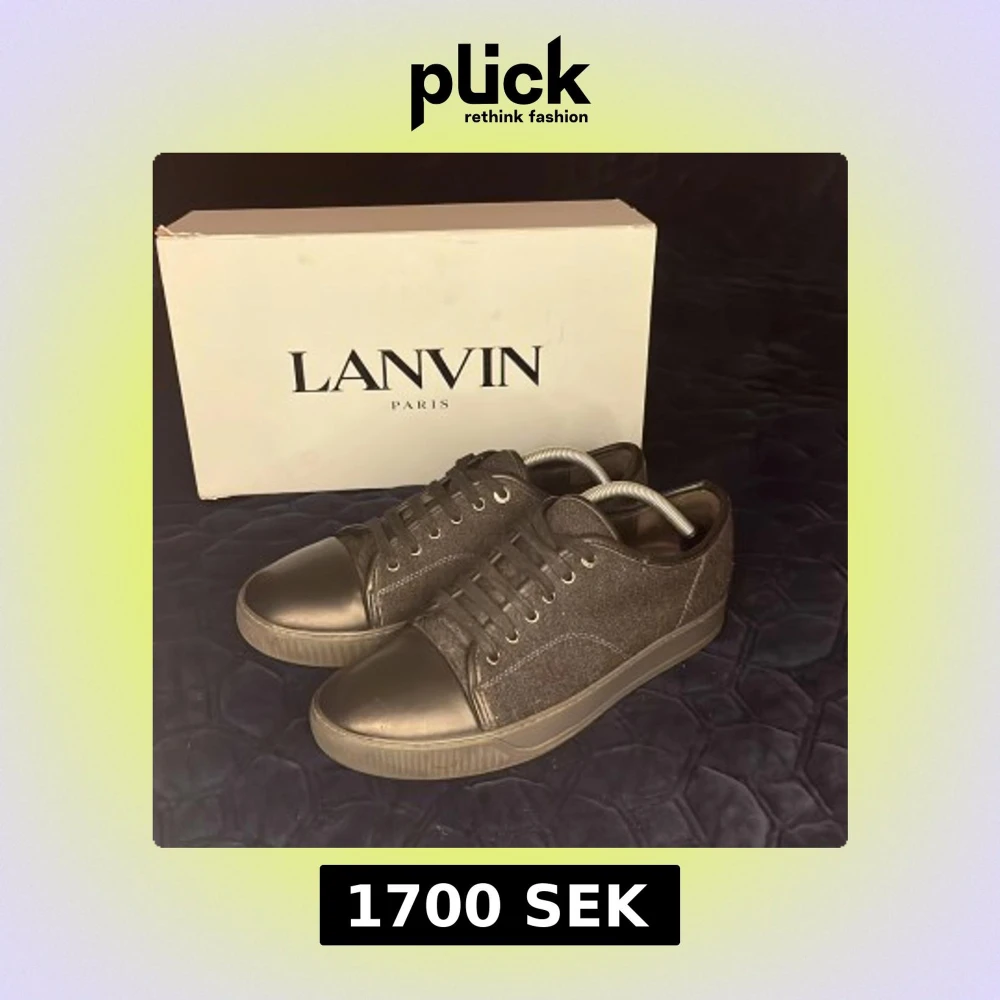 Tja just nu Säljer ett par svarta sneakers från Lanvin med ovandel i filt och matt läder captoe. skorna är i bra skick med några små skavanker som ej märks av vid användning. skon är i storlek sju men passar mig som har 43-42. Obs endast skorna ingår. Nypris ligger runt 5000 medan jag säljer för endast 1700. Men priset är så klart diskuterar bart. Jag tar gärna byten som vanligt och så får jag önska er en fortsatt trevlig dag. Med vänliga hälsningar Oscar