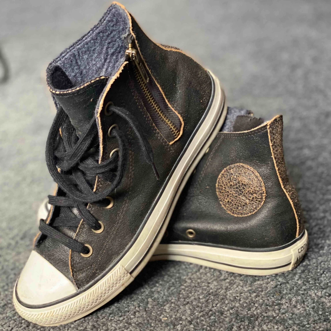 Bruna Converse Special Edition i skin. Inköpta i New York, dock för små för mig. Har använt dom 5 gånger. 200kr, frakten kan vi diskutera. Jag kan också tänka mig byta mot andra sneakers/kläder i stl 39-40 eller S i kläder. Kom med förlag!