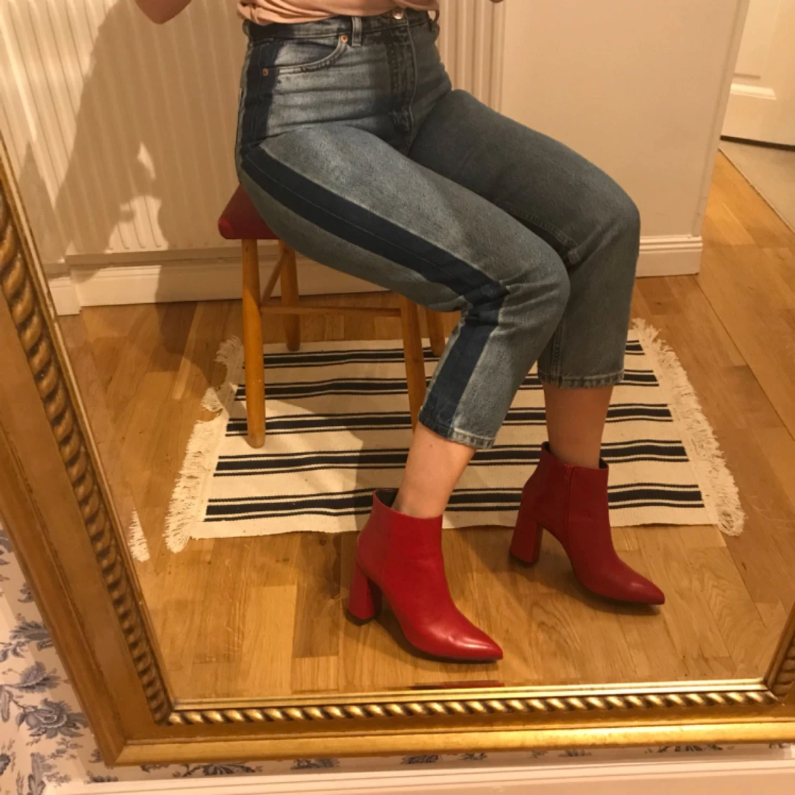 Trendiga läder stövlar, helt nya! Använda en gång, sälj pga jag kan inte gå i höga skor. Kvitto och kartong är med. Nypris 1500kr.