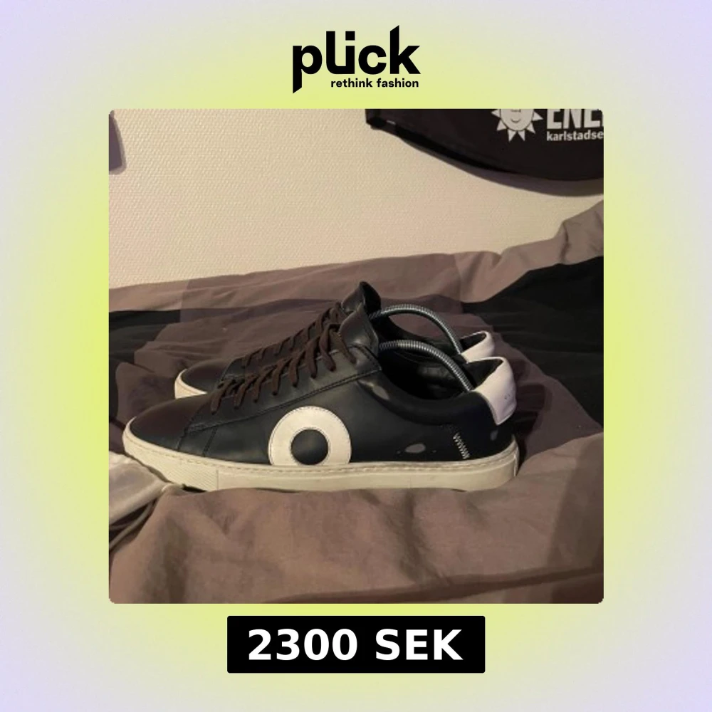 Snygga mörkblå sneakers från Oliver Cabell med vita detaljer och snörning. Skorna har en stilren design med en vit sula och en rund vit cirkel på sidan. Perfekta för en avslappnad stil. Kontakta vid frågor. Bara några små skador på ena längst fram men de syns inte när skorna används