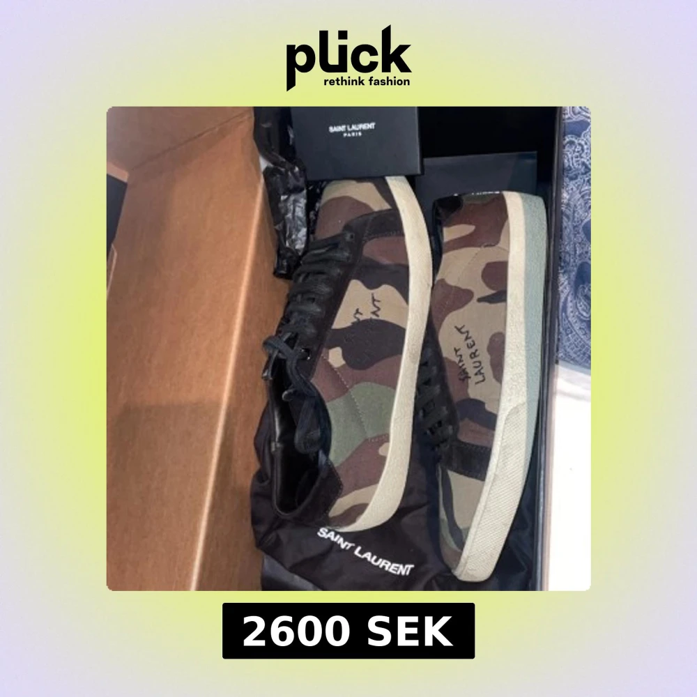 Snygga sneakers från Saint Laurent i ett coolt camouflage-mönster. Skorna har en klassisk design med snörning och en bekväm sula. Perfekta för att ge din outfit en edgy touch.