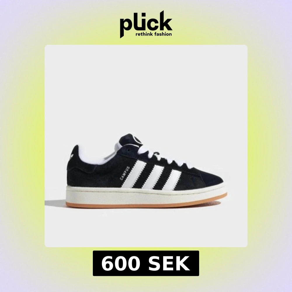 Klassiska Adidas Campus sneakers i svart mocka med vita detaljer och de ikoniska tre ränderna på sidan. Låg modell med vit sula och gummiyttersula. Perfekta för en stilren och sportig look. Andvända fåtal gånger och i väldigt bra skick skriv för bilder.