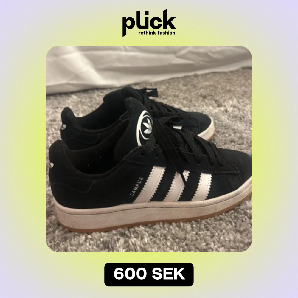 säljer mina svarta campus då dem är för små, köpt för 1 200!Säljer för 600.Du får med vita snören också!