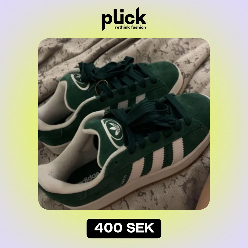 Säljer dessa mörkgröna adidas campus skorna som är köpta i London i april! (BILDEN ÄR FRÅN NÄR DE VAR HELT NYA) skriv för fler bilder. Passar 38/39, högsta bud 520 just nu