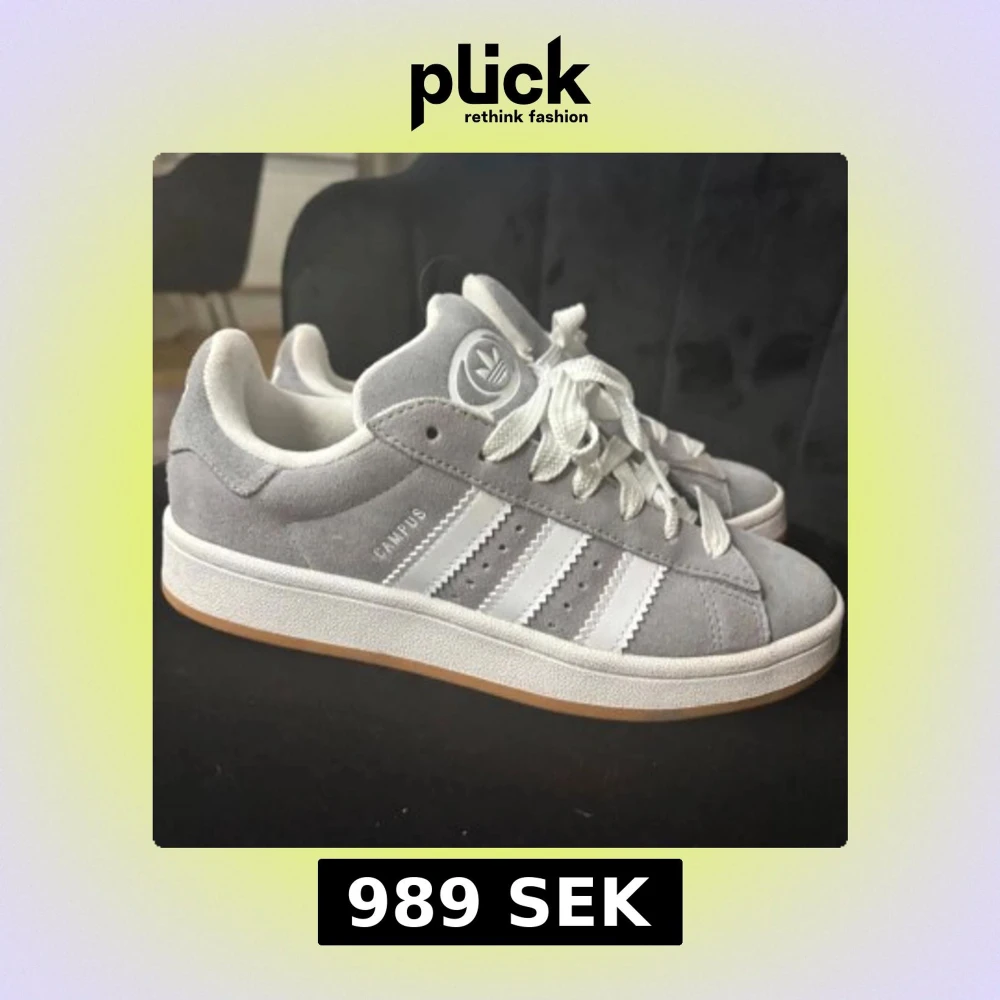 SKRIV TILL MIG INNAN DU KÖPER!! Snygga grå Adidas Campus sneakers i mocka med vita detaljer och klassiska tre ränder. Skorna har en gummisula i ljusbrun färg och snörning för en bekväm passform. Perfekta för en stilren vardagslook. Pris: 989kr