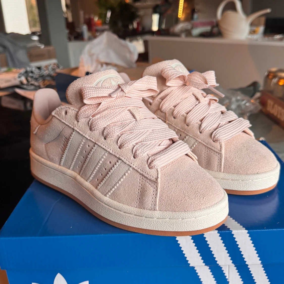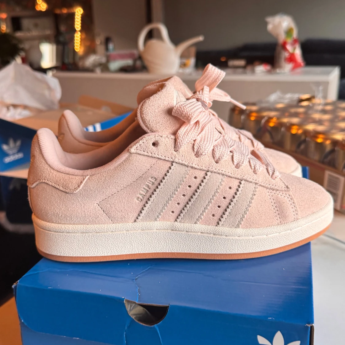 säljer dem slutaålda rosa addidas campus då jag beställde fel storlek och har nu två par av samma skor, helt oanvända bara tästade, alla lappar kvar och lådan dem skickades i.❤️skriv för mer bilder och villig för diskutera pris (har även köpt smutts & vattentäckande sko sprej så kan spreja innan dem skickas om önskat)