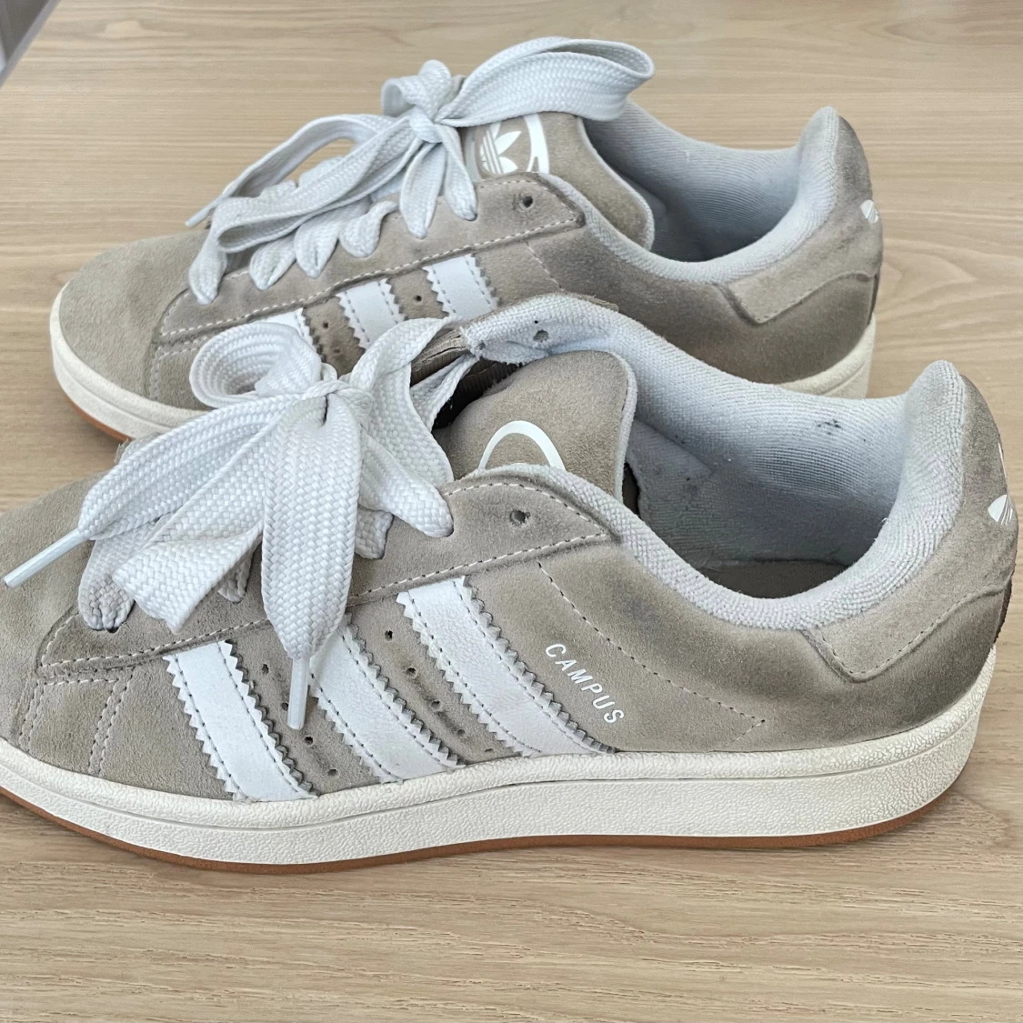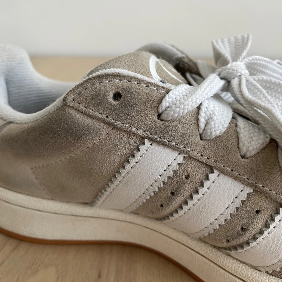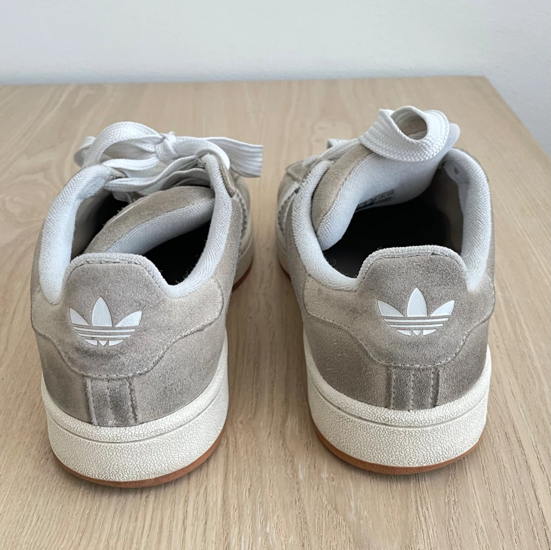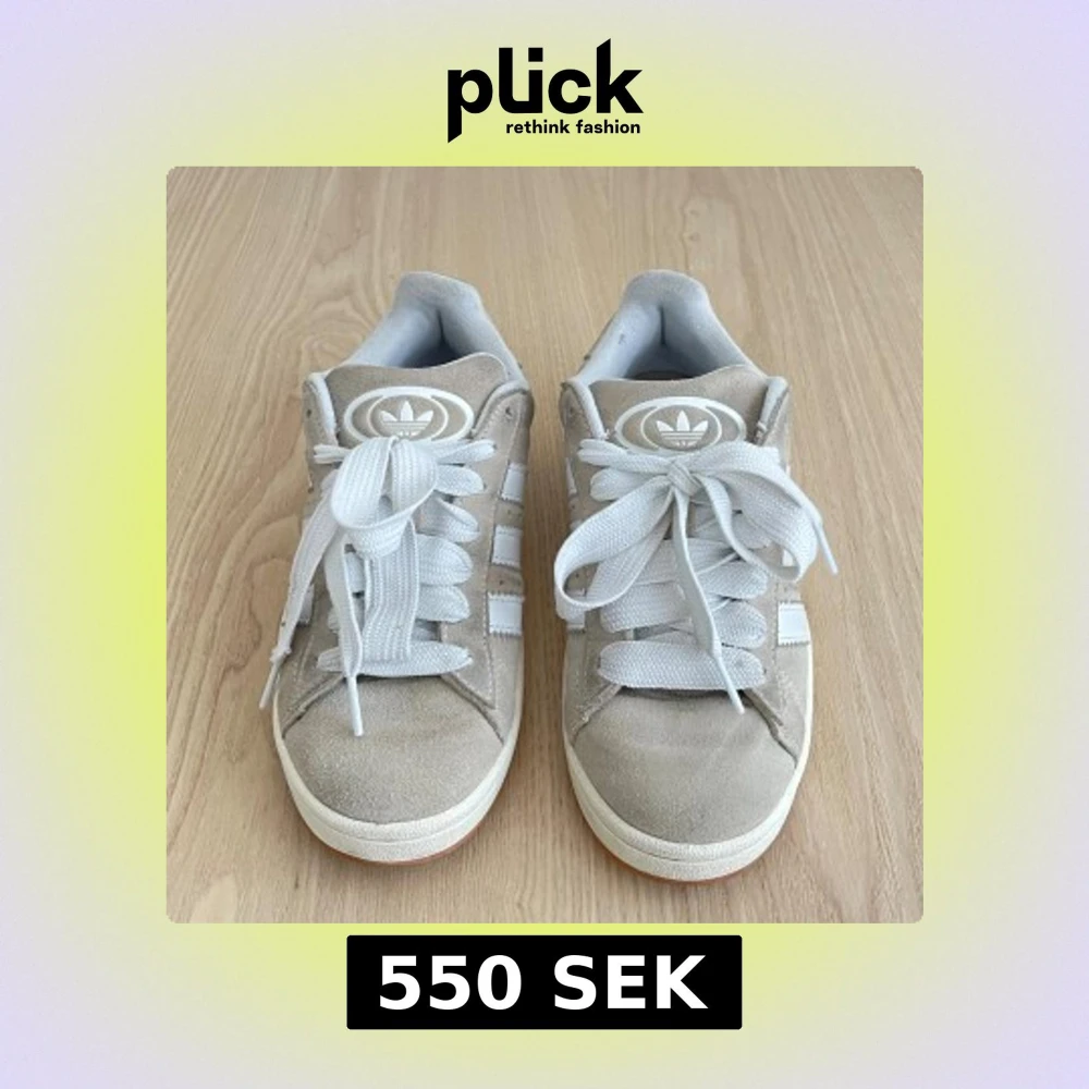 Säljer mina Adidas Campus 00’s i beige. De är väl använda och har en del fläckar och märken, men fina och bekväma oavsett. Kan mötas upp i Sthlm, annars står köparen för frakten 🩷
