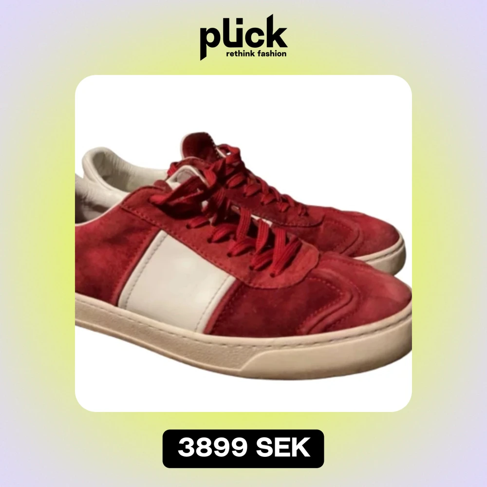 Säljer mina trendiga och asfeta valentino flycrew i storlek 42 men passar 42-43. Dem är i röd mocka. Skicket är fint. Däremot fattas 4 nitar… men dem är i dunder skick om man bortser från det! Skosnöre och tag från farfetch där dem är köpta medföljer