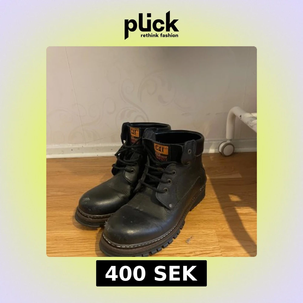 Tuffa svarta boots från CAT med grov sula och snörning. Skorna är tillverkade i slitstarkt skinn och har märkets logga i gult på baksidan och plösen. Perfekta för dig som gillar robust stil och vill ha något som sticker ut.