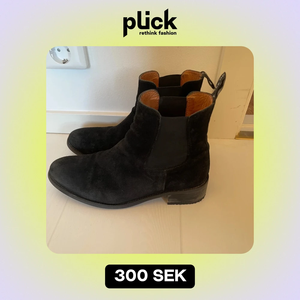 Säljer ett par stilrena svarta Chelsea boots i mocka från Tiger of Sweden. De har en klassisk design med en liten klack. Perfekta för både vardag. Använda men i mycket bra skick. Har adderat en gummisula på klacken hos skomakare. Storlek 40, passar 39-40.