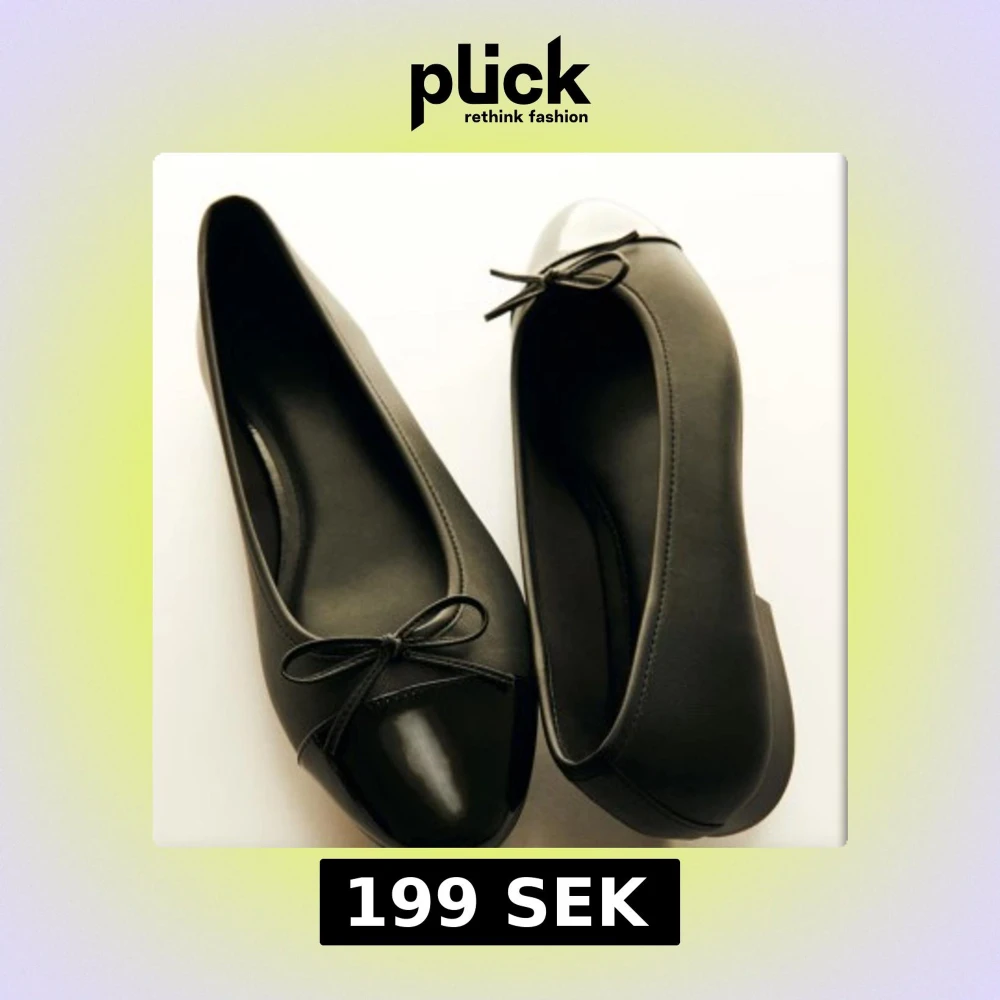 Stilrena svarta ballerinaskor med rund tå och lackad tådel. Skorna har en söt rosett framtill och är tillverkade i syntetmaterial. Perfekta för dig som gillar klassisk och enkel stil med en liten twist. Trendiga och slutsålda.