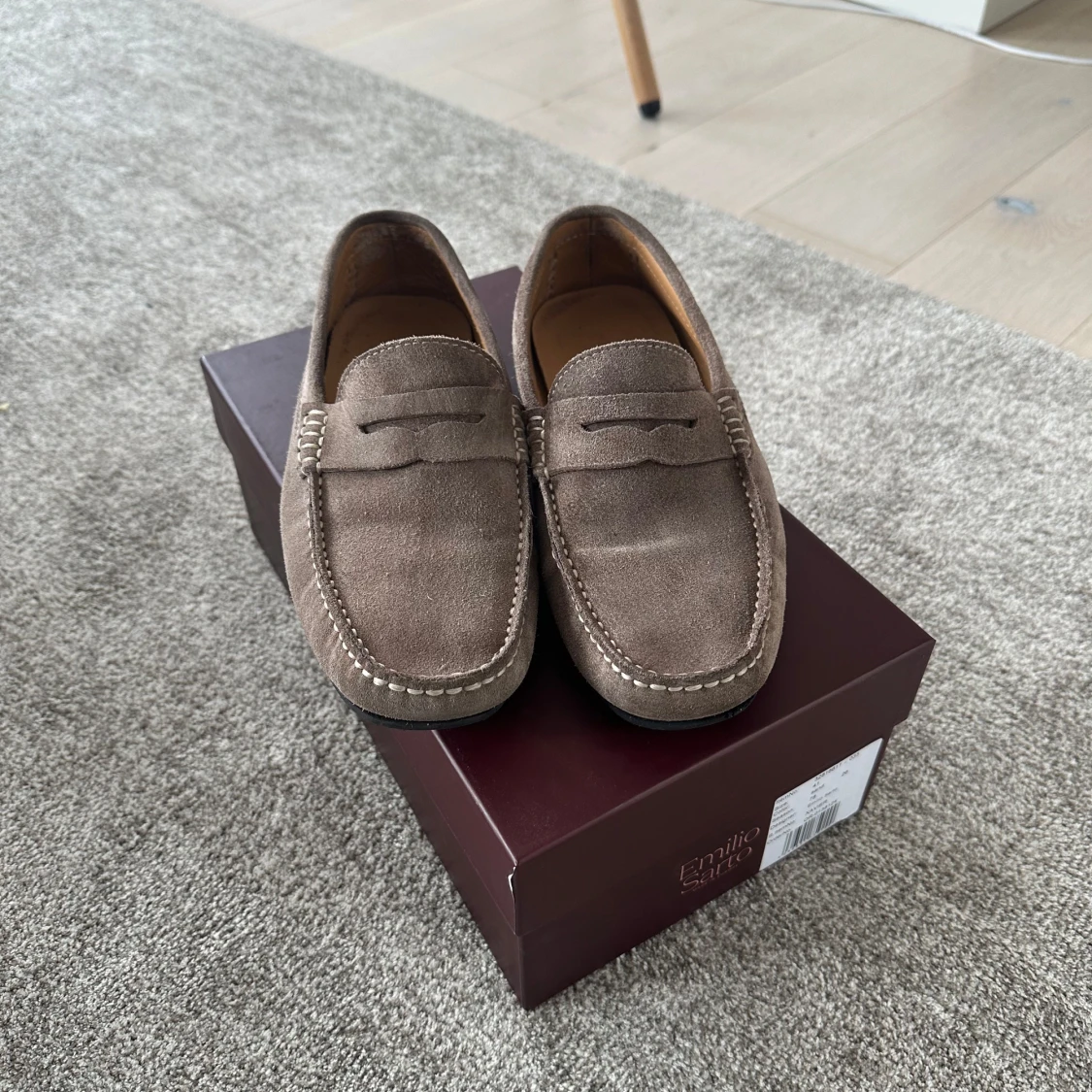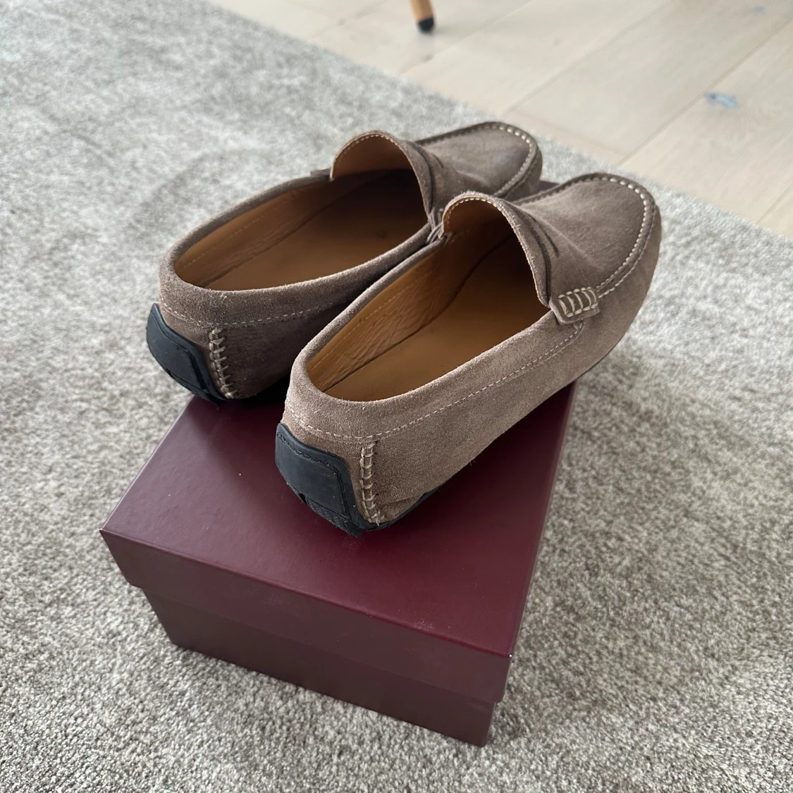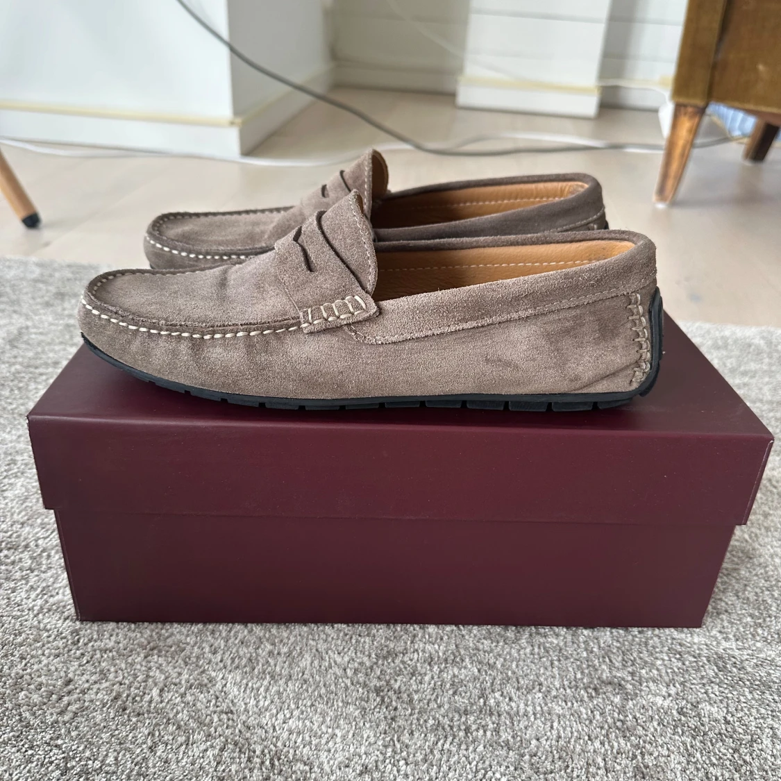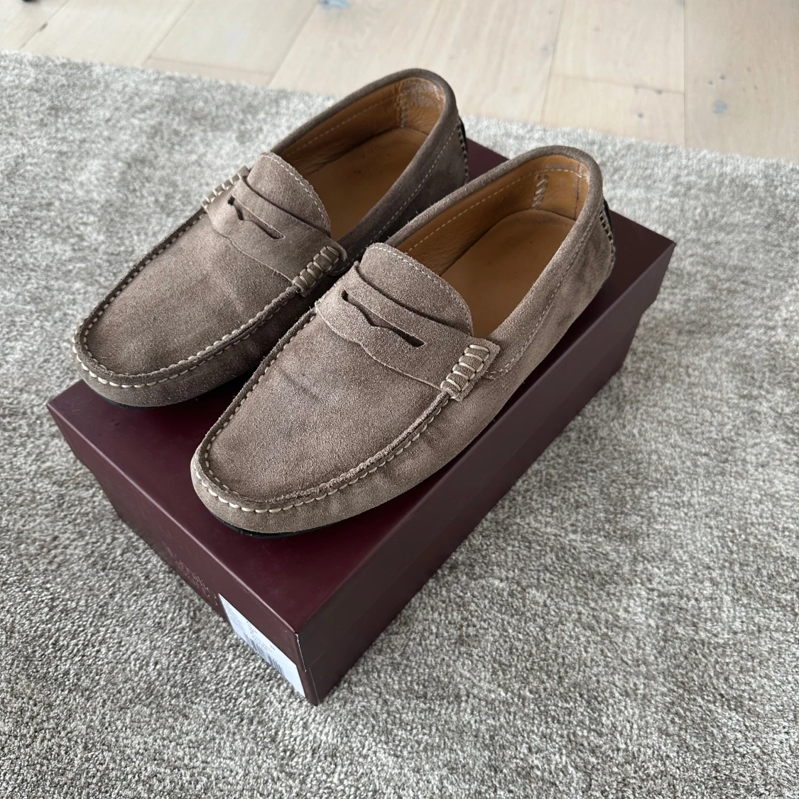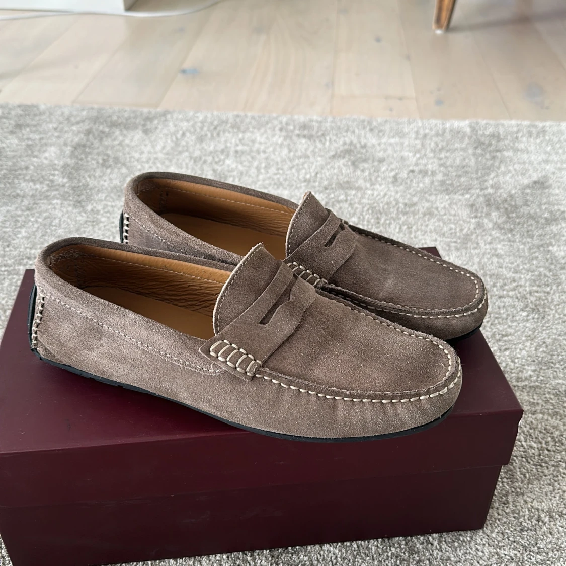 Snygga beige/bruna loafers i mocka med klassisk design. Skorna är i mycket bra skick och har använts sparsamt. Nypris ligger på 1499. Kontakta mig vid frågor🤩