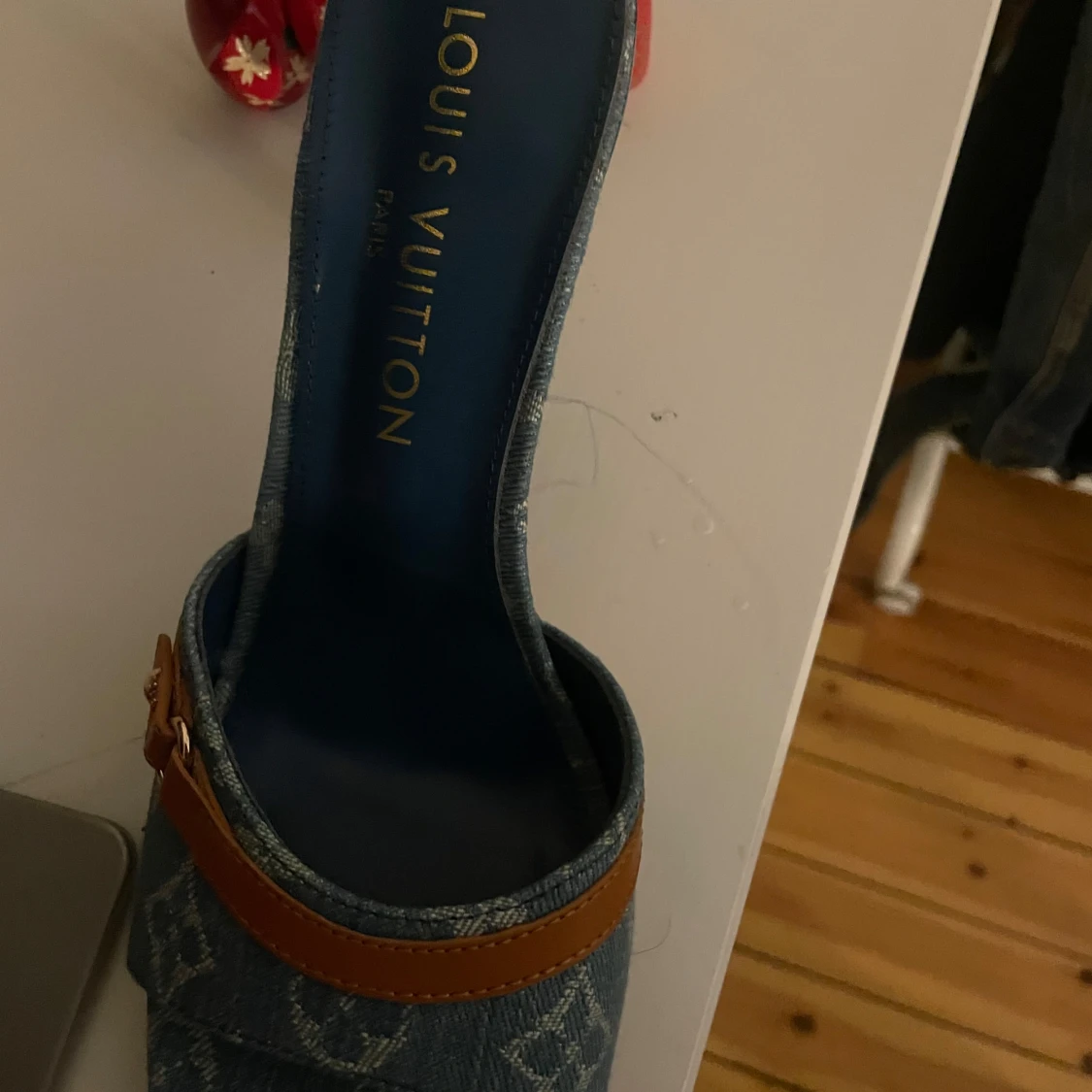 Säljer ett par oanvända Louis Vuitton klackar i blå denim. Strl 42. Inte äkta men hög kvalite därav priset. Priset kan även diskuteras.