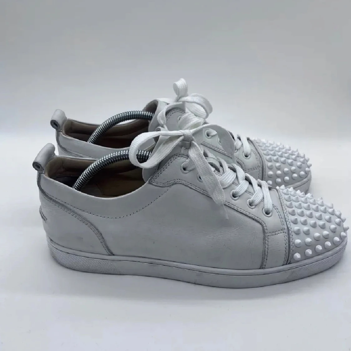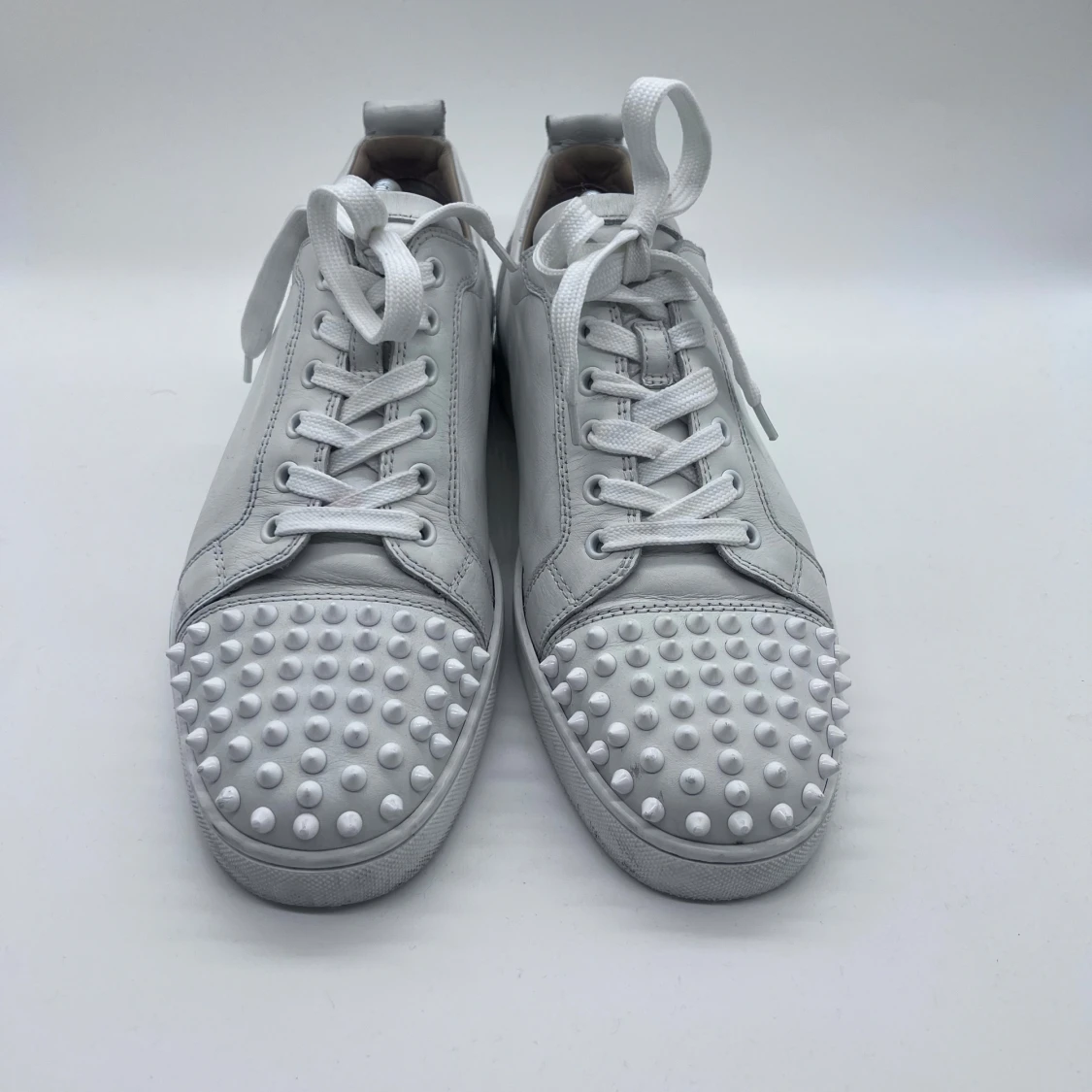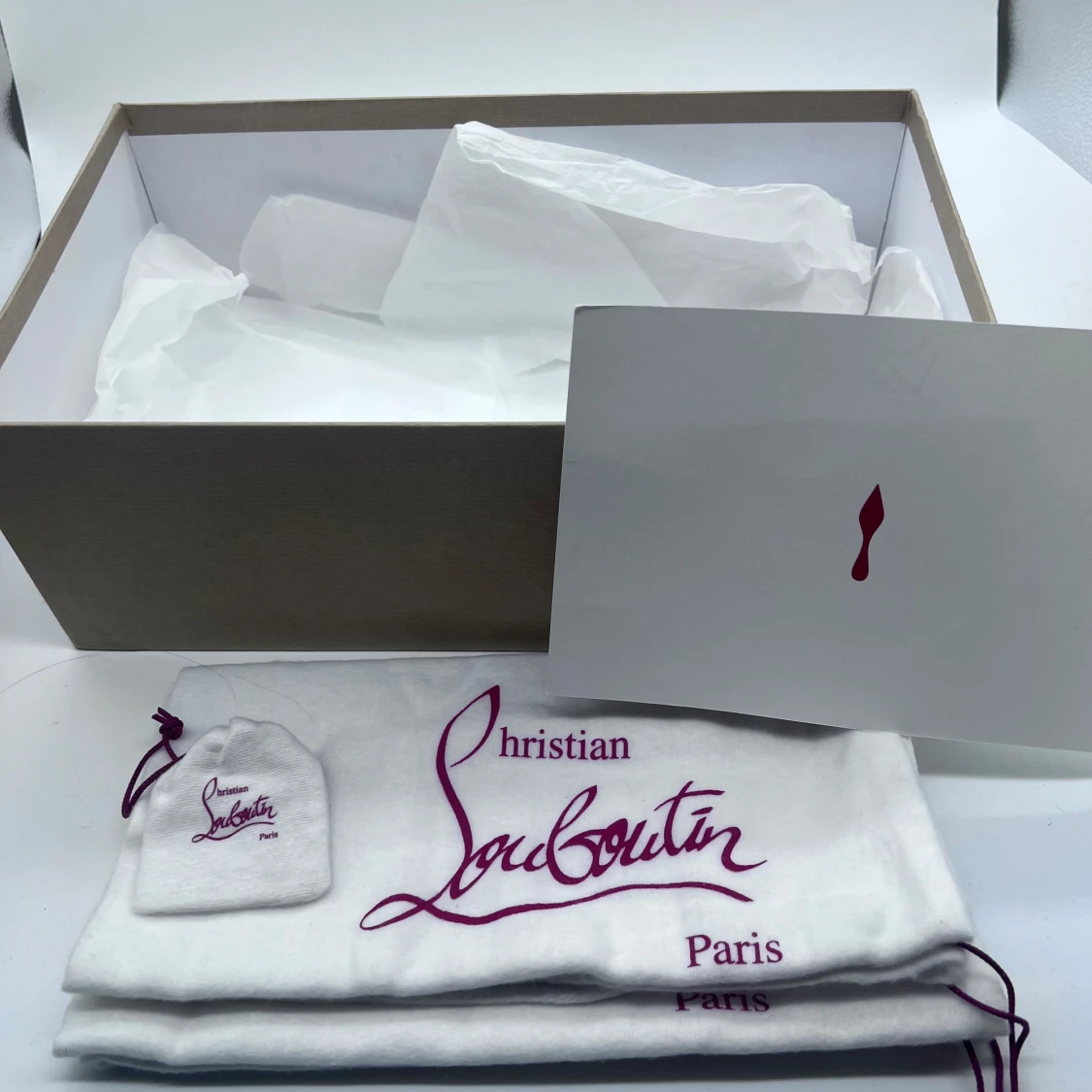 Hej, säljer nu ett par Loubs i bra skick. Ända defekten är att den har fått en liten skada på sulan men detta ser man ej när man har på skorna. Annars är skorna i toppskick. Box, dustbag, extra nitar och äktahetsintyg medföljer!