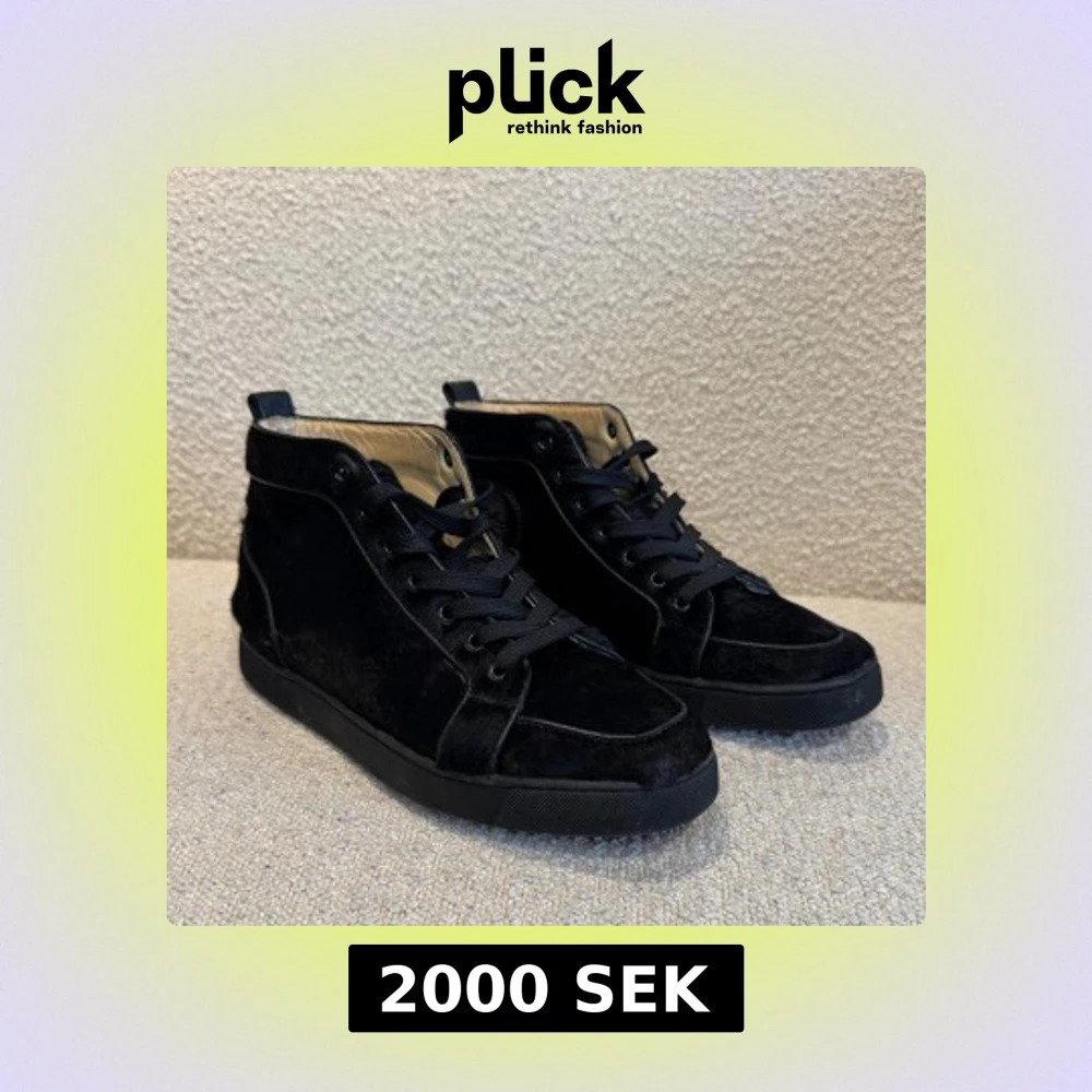 Svarta it-skor från Christian Louboutin, med coolt ”pony-hair” liknande material. Använt skick. Slitna innersulor, slitna snören (se bilder)