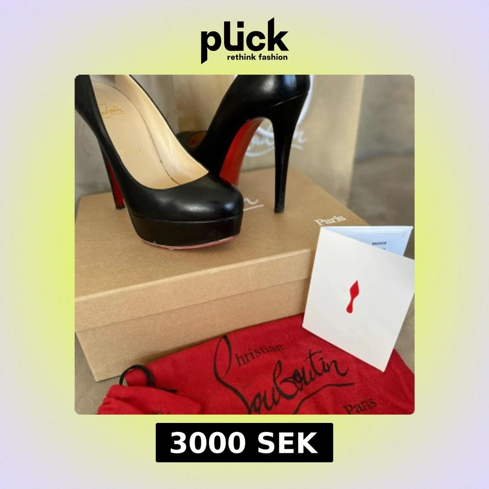 Ikoniska svarta pumps från Christian Louboutin ”Bianca” med klassisk röd sula och hög klack. Skorna har rund tå och plattform, tillverkade i skinn. Perfekta för dig som vill sticka ut med en lyxig och tidlös look.